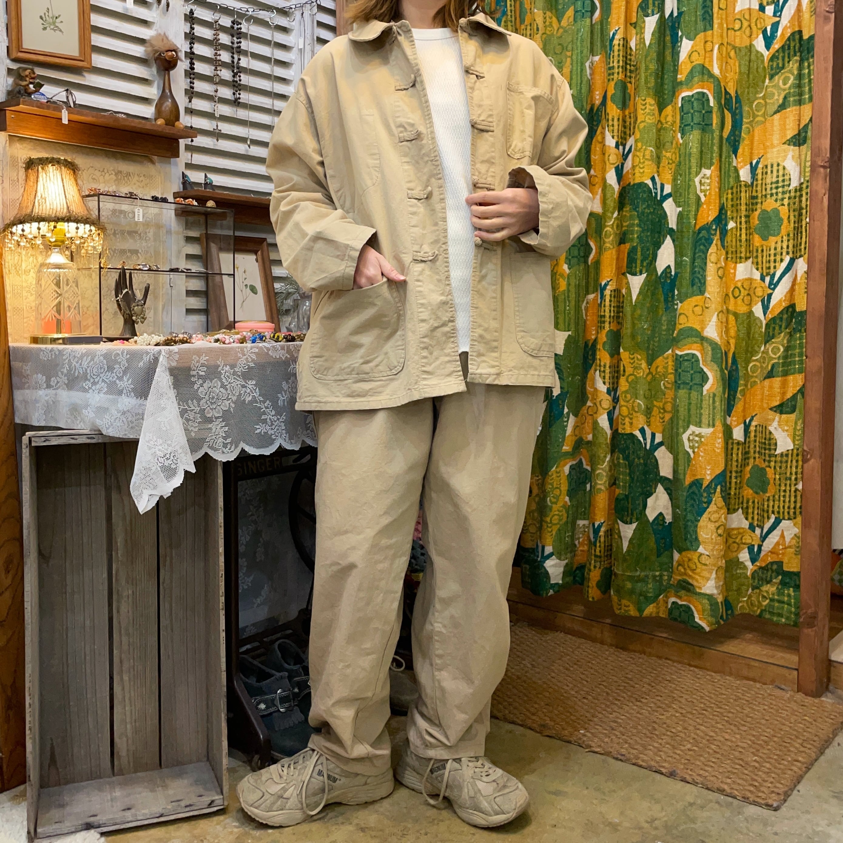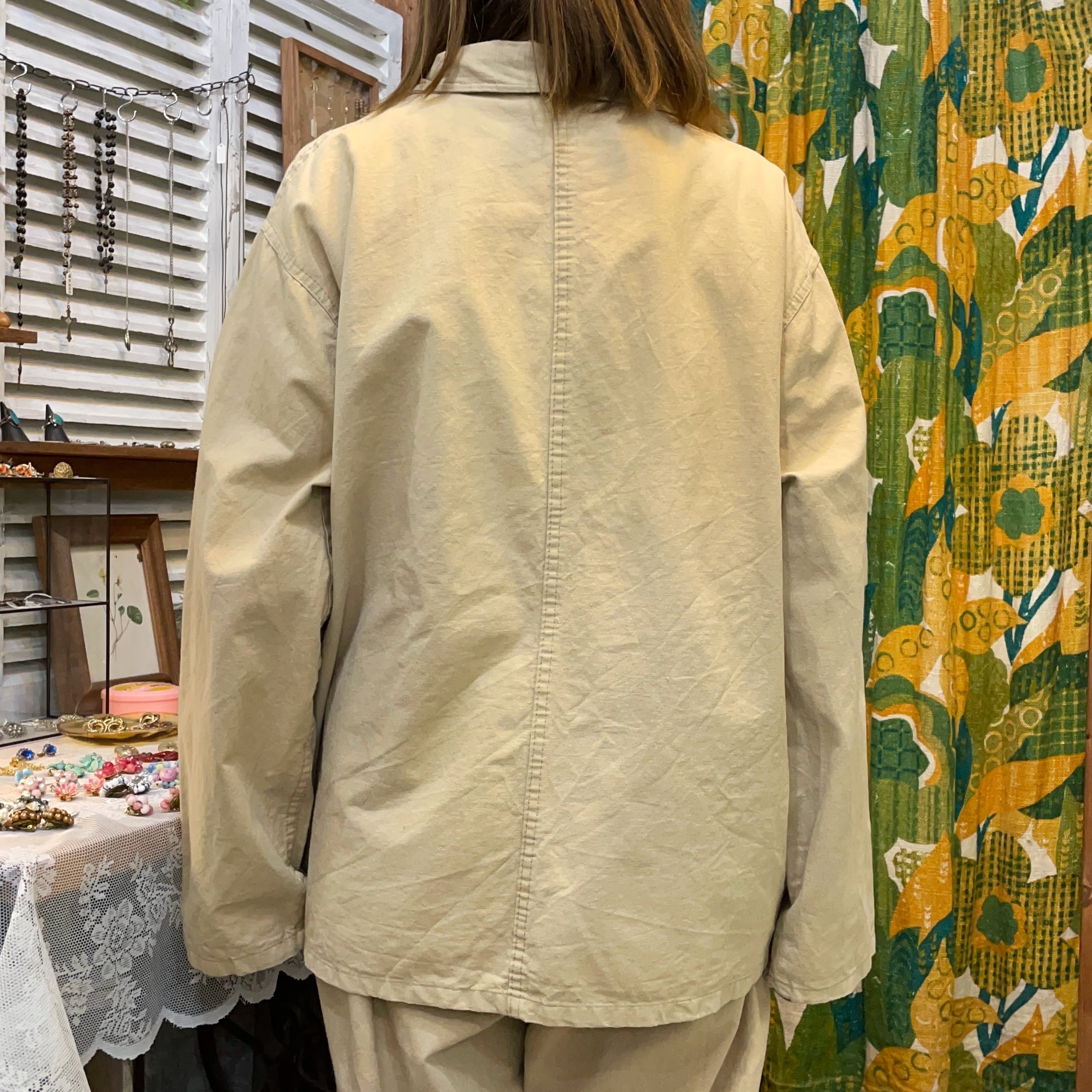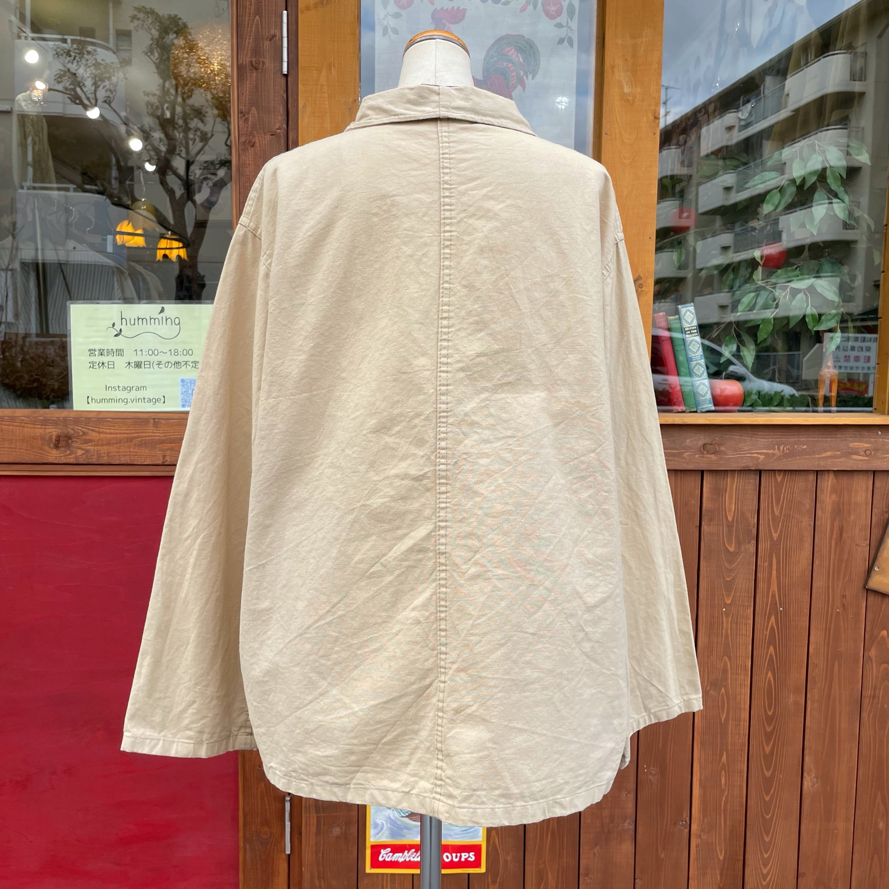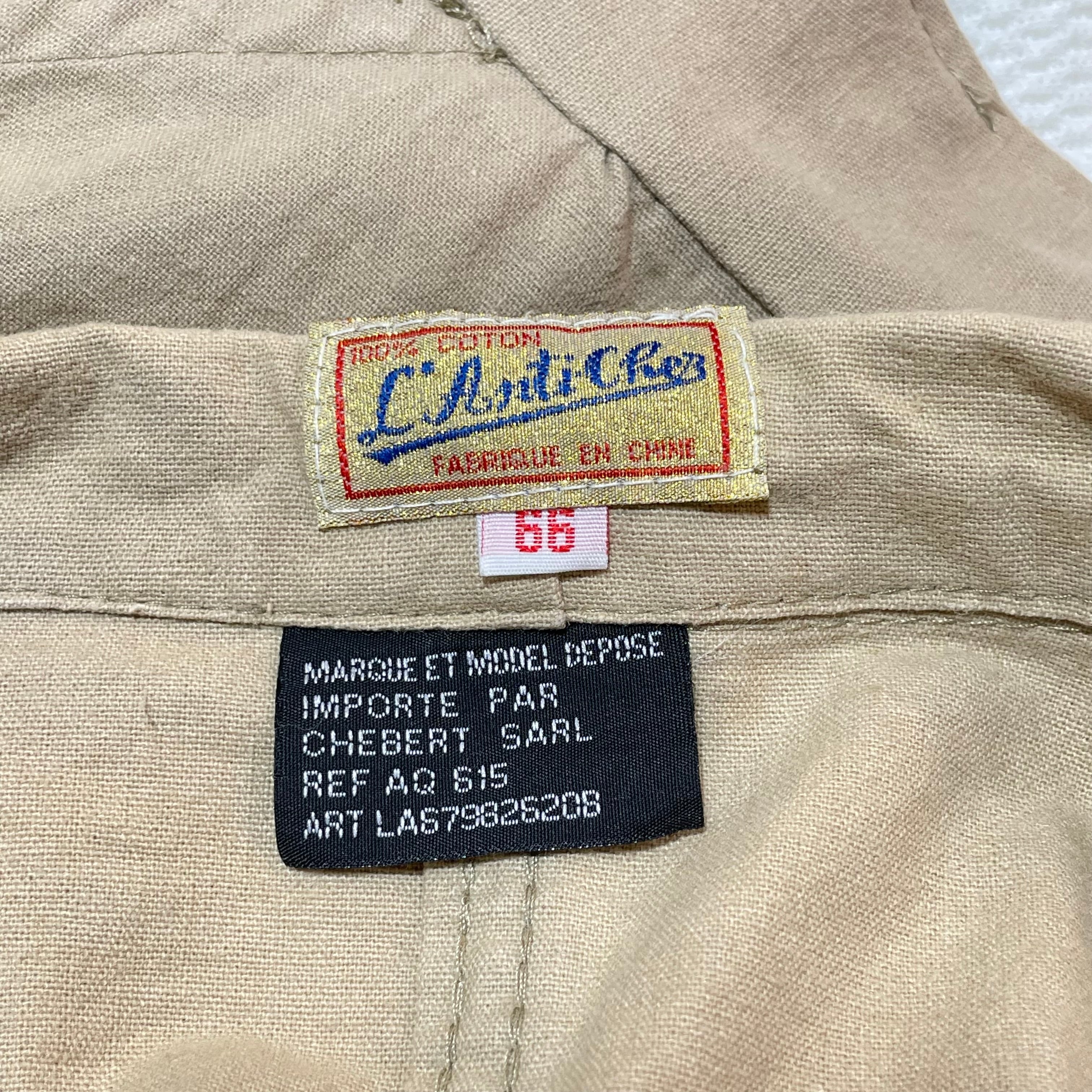 フランスで働く中国人移民労働者向けに作られた作業着で中国人向けに作られているのでボタンはチャイナトグルに。