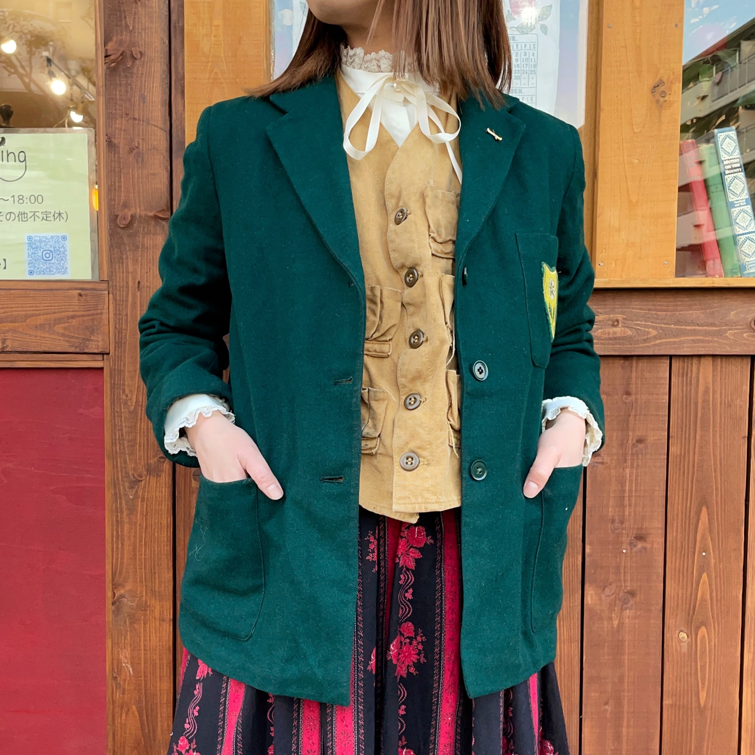 しっかりとしたウール素材でできていて女性が着用して綺麗に着れる良いサイズ感に。