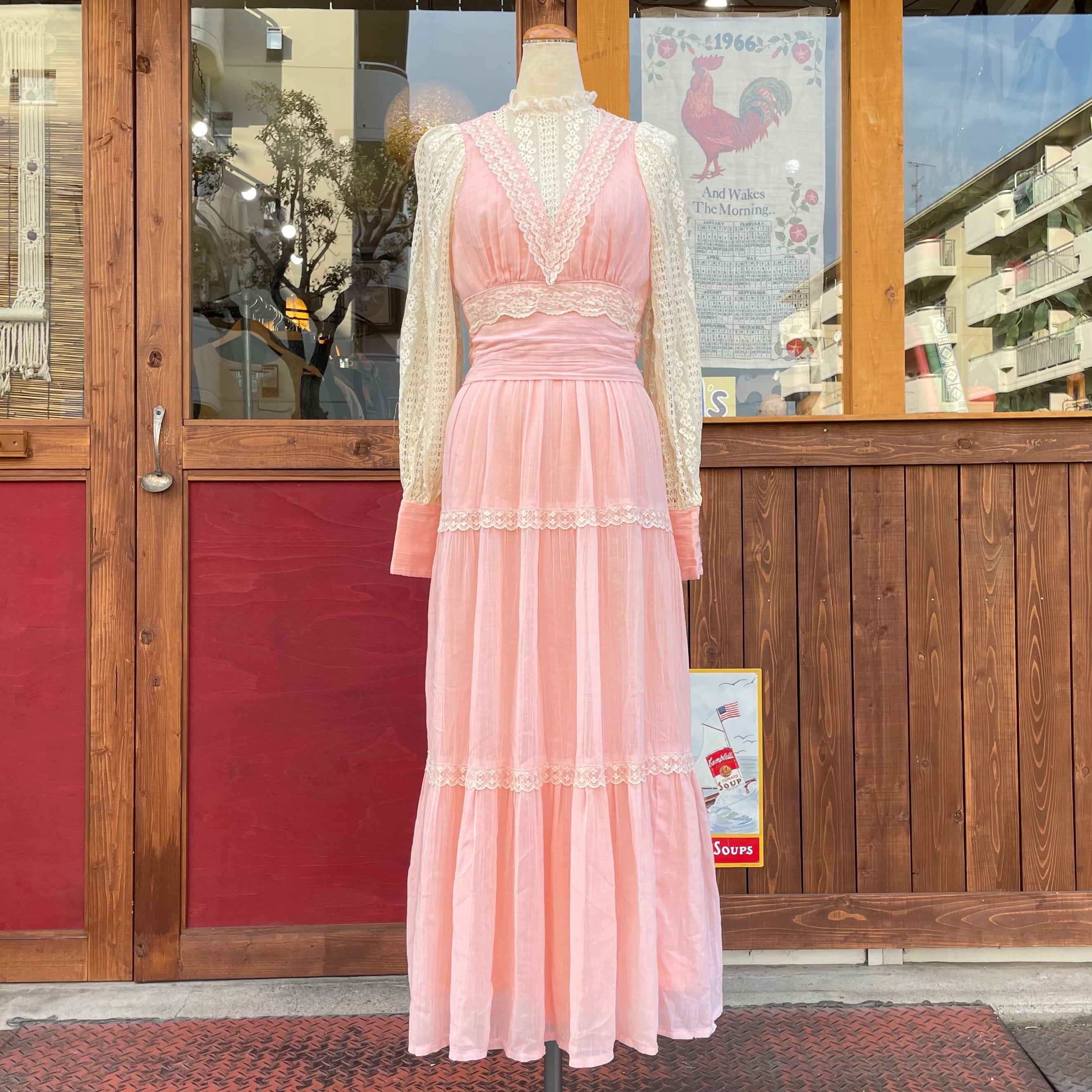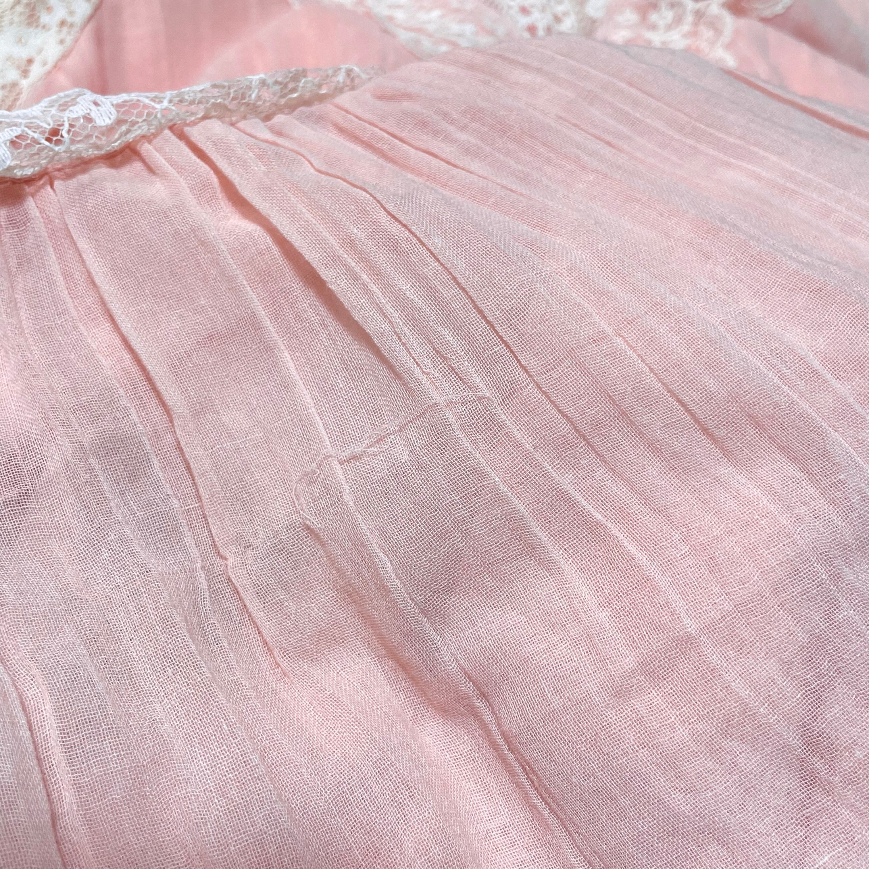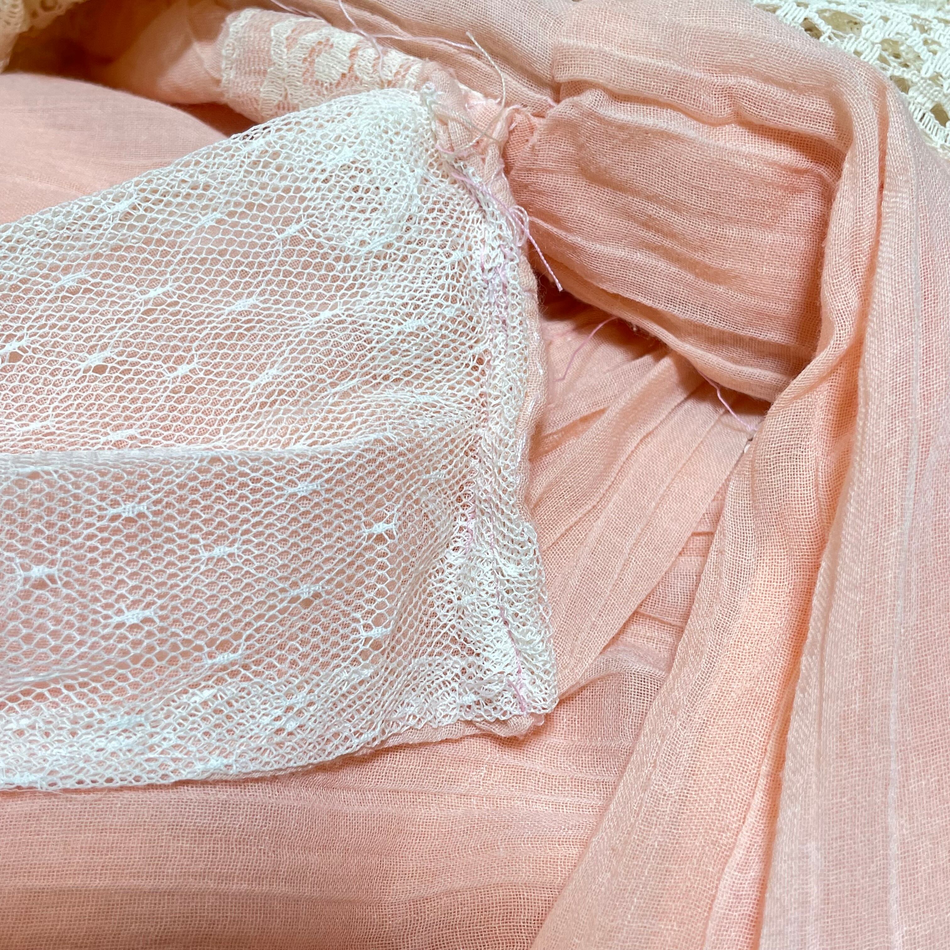 恐らくウエストリボンが後付けされており、ホツレなどがございます。裾に引きつり箇所がございます。