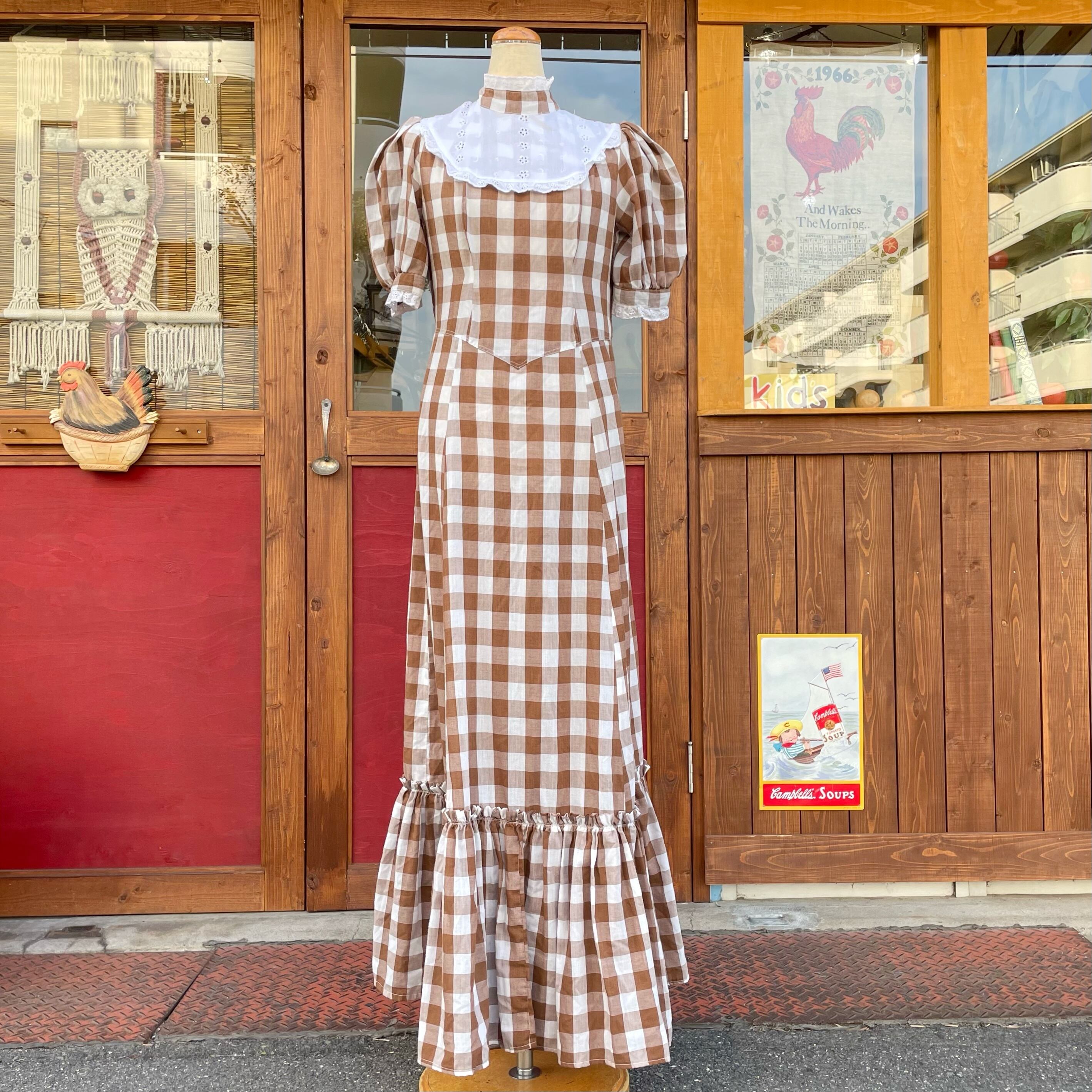 vintage brown gingham check dress