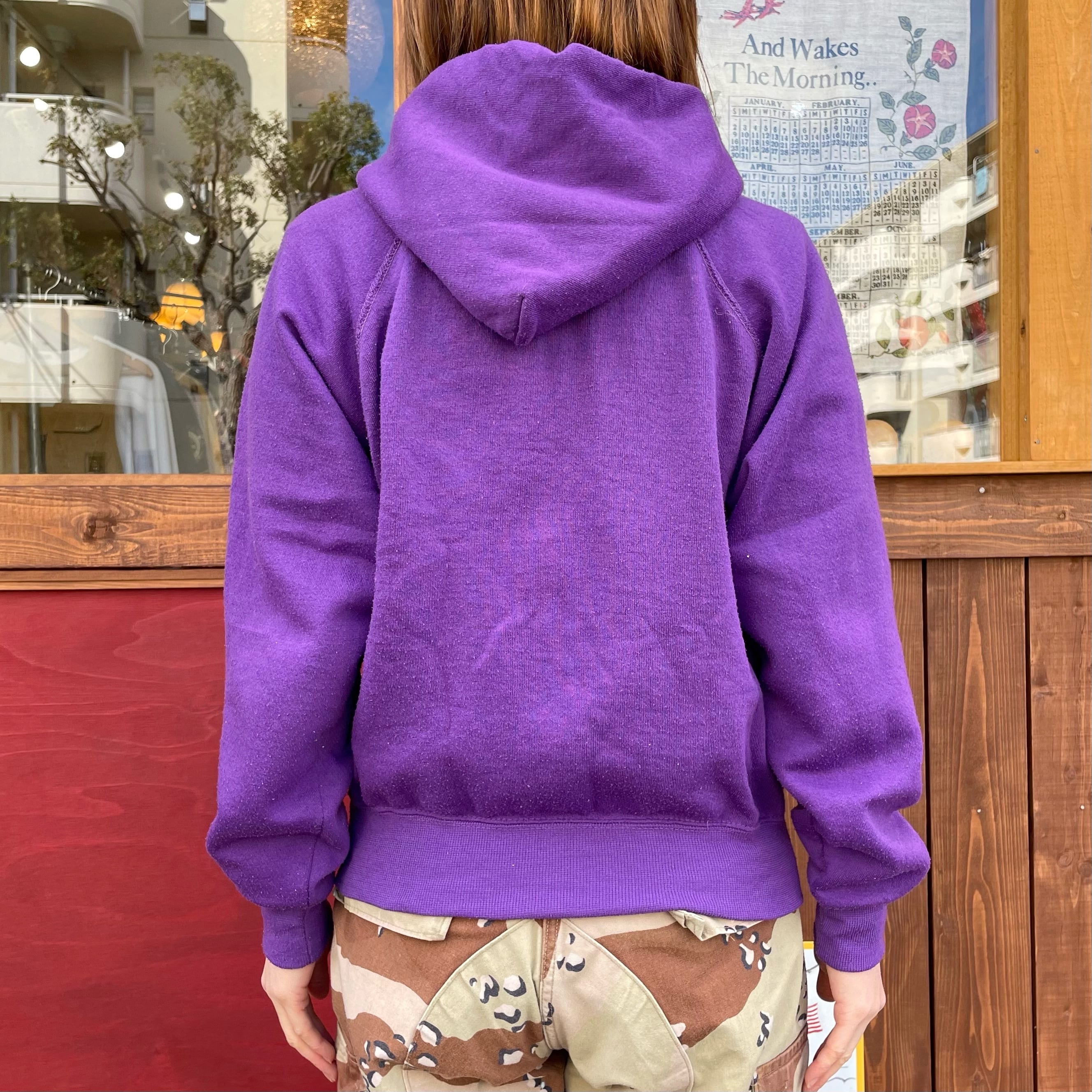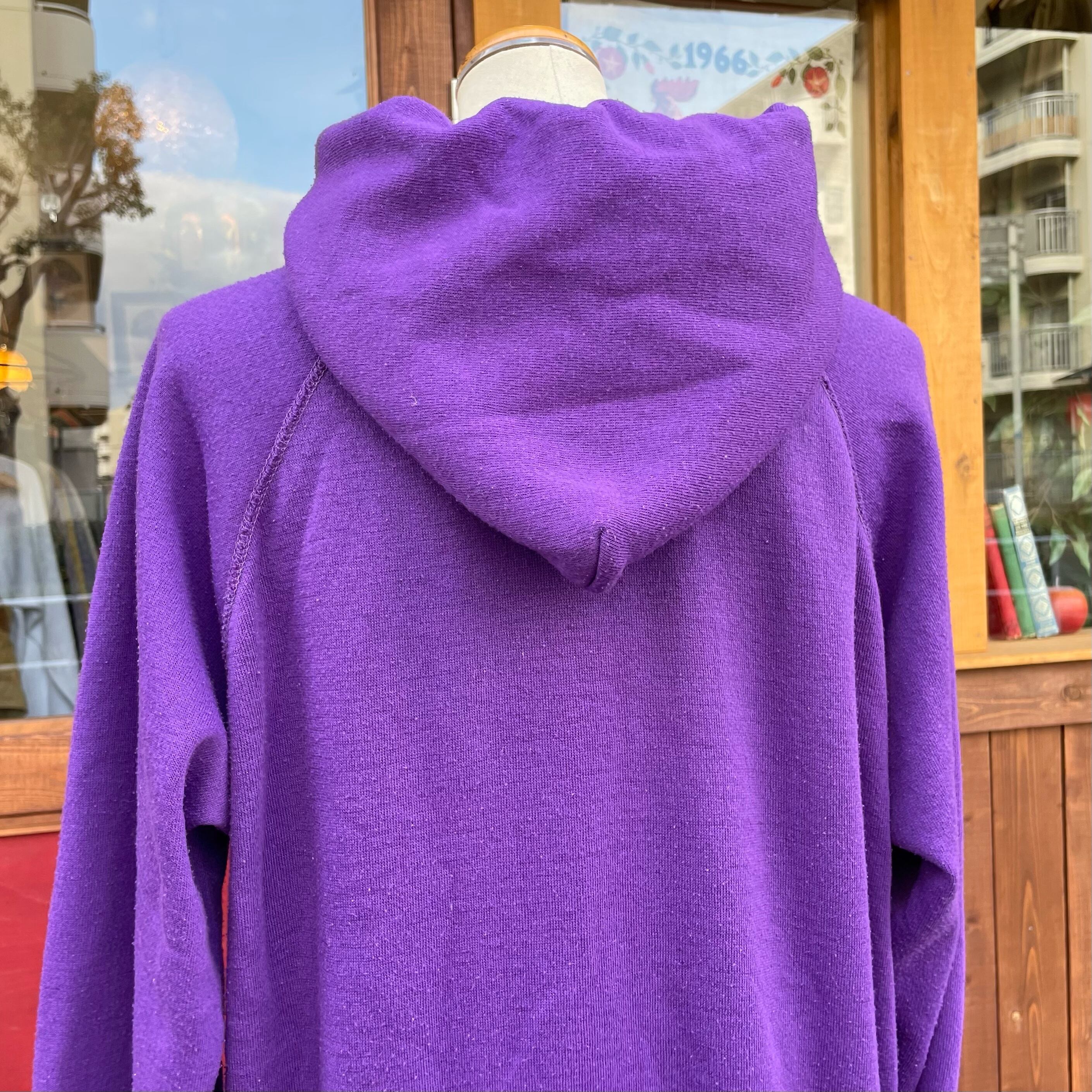 鮮やかなパープルのハートパーカーになります。