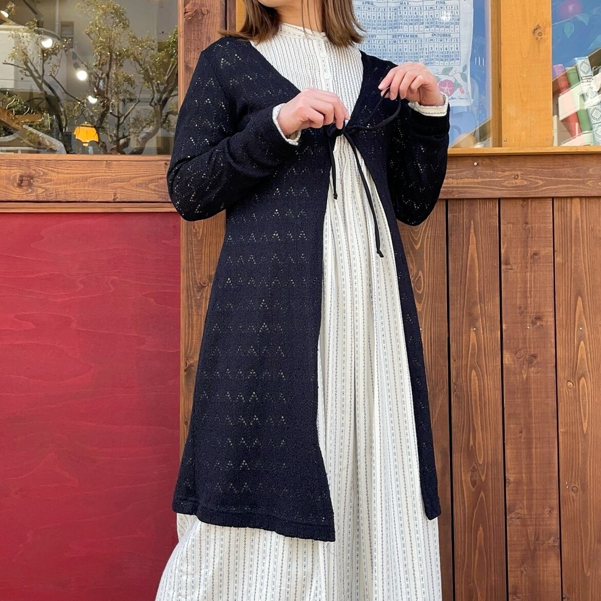 透かし編みのロングカーディガンです。