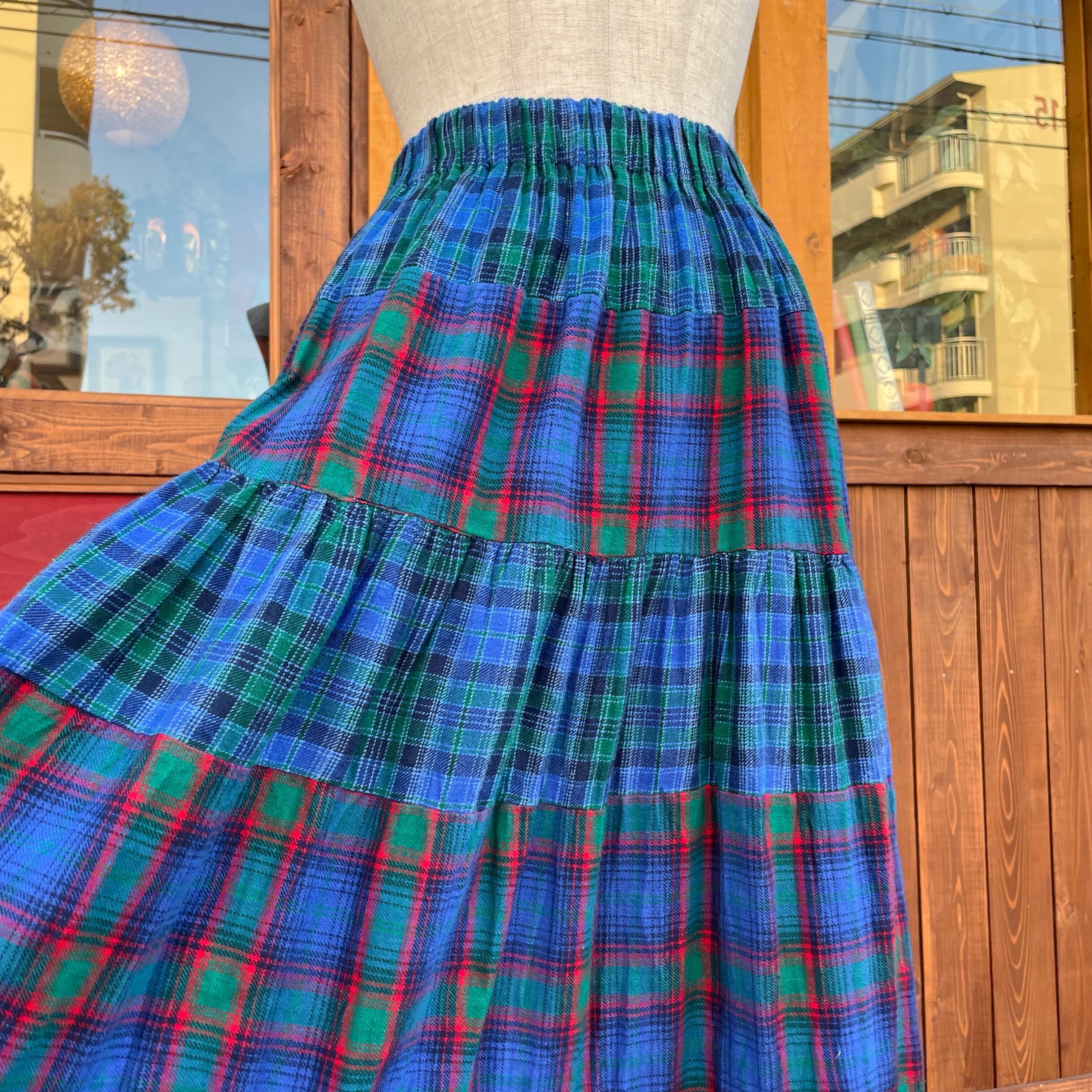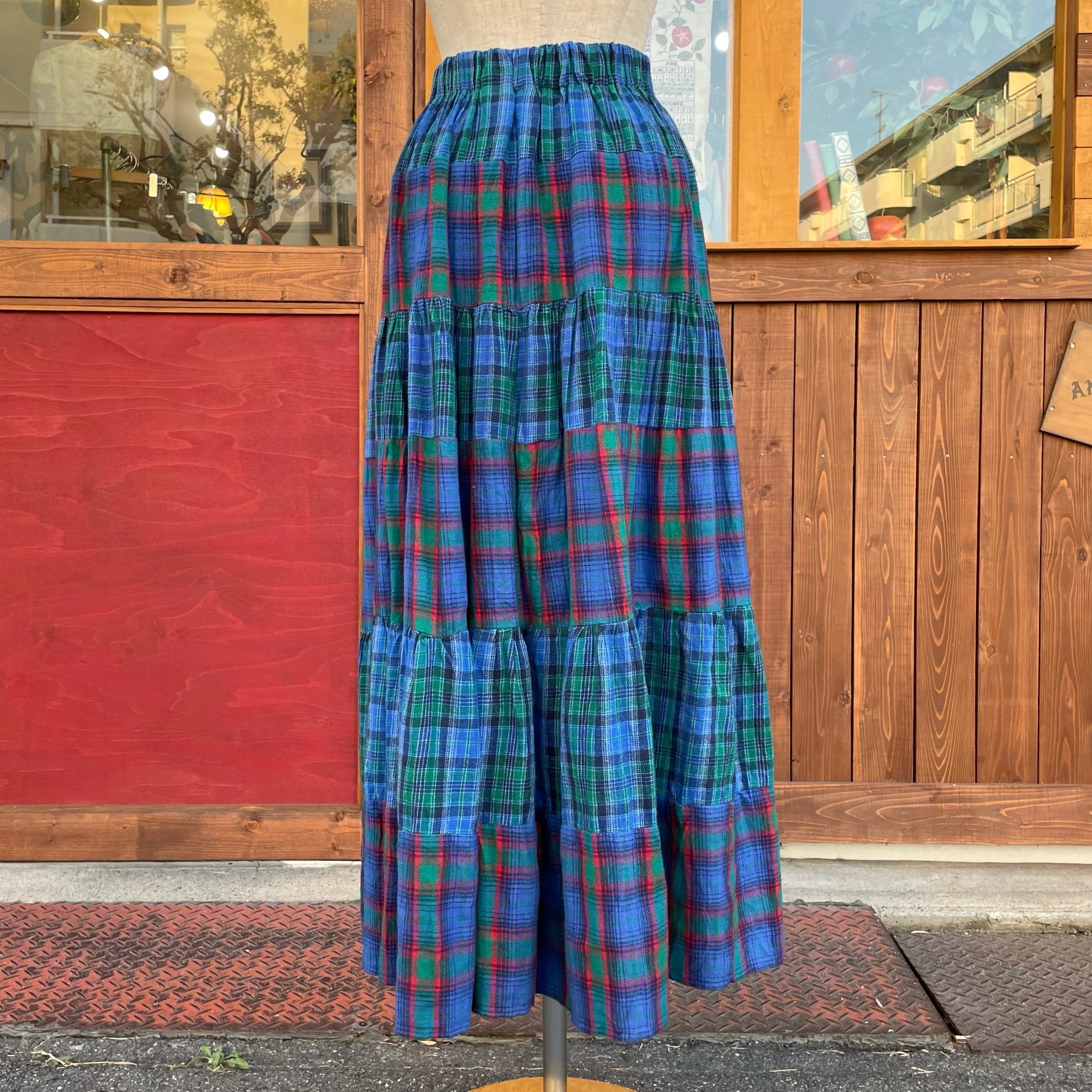 ブルーベースのチェック柄が可愛いティアードスカートです。