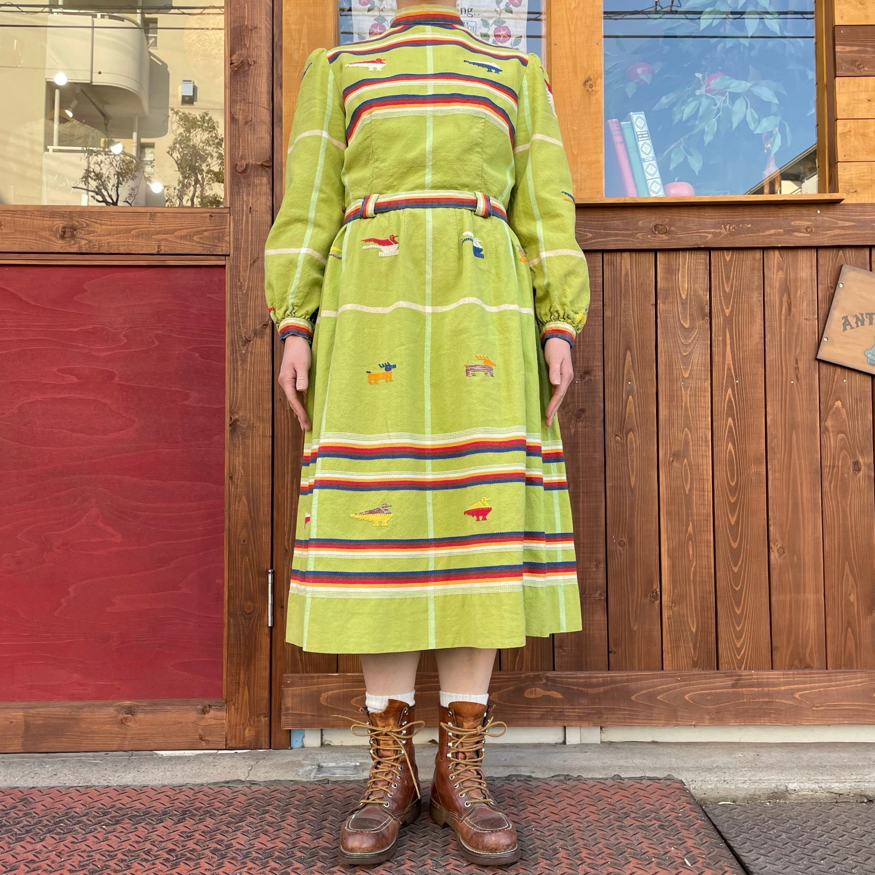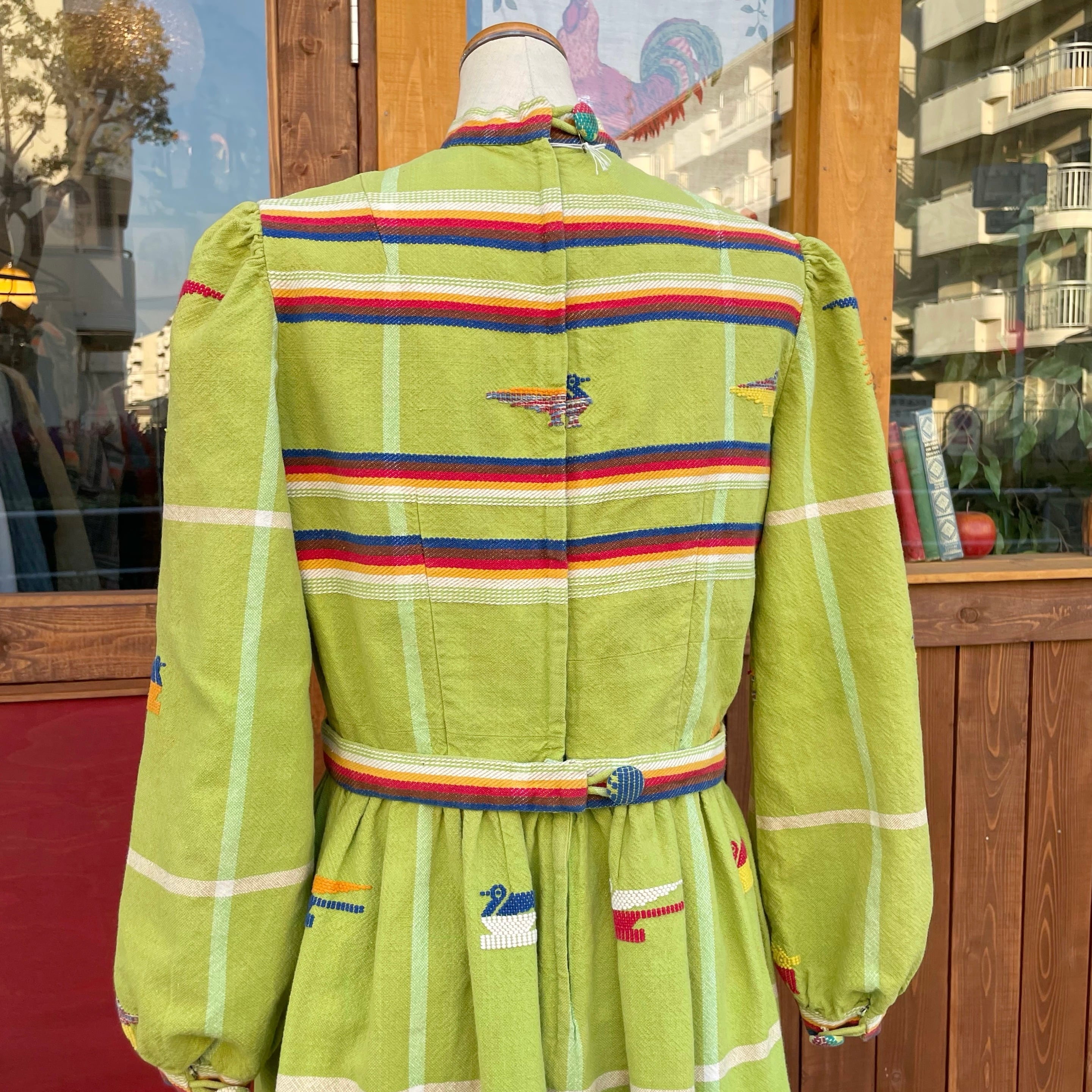 鮮やかなライトグリーンにカラフルな刺繍がグアテマラらしいデザインです。