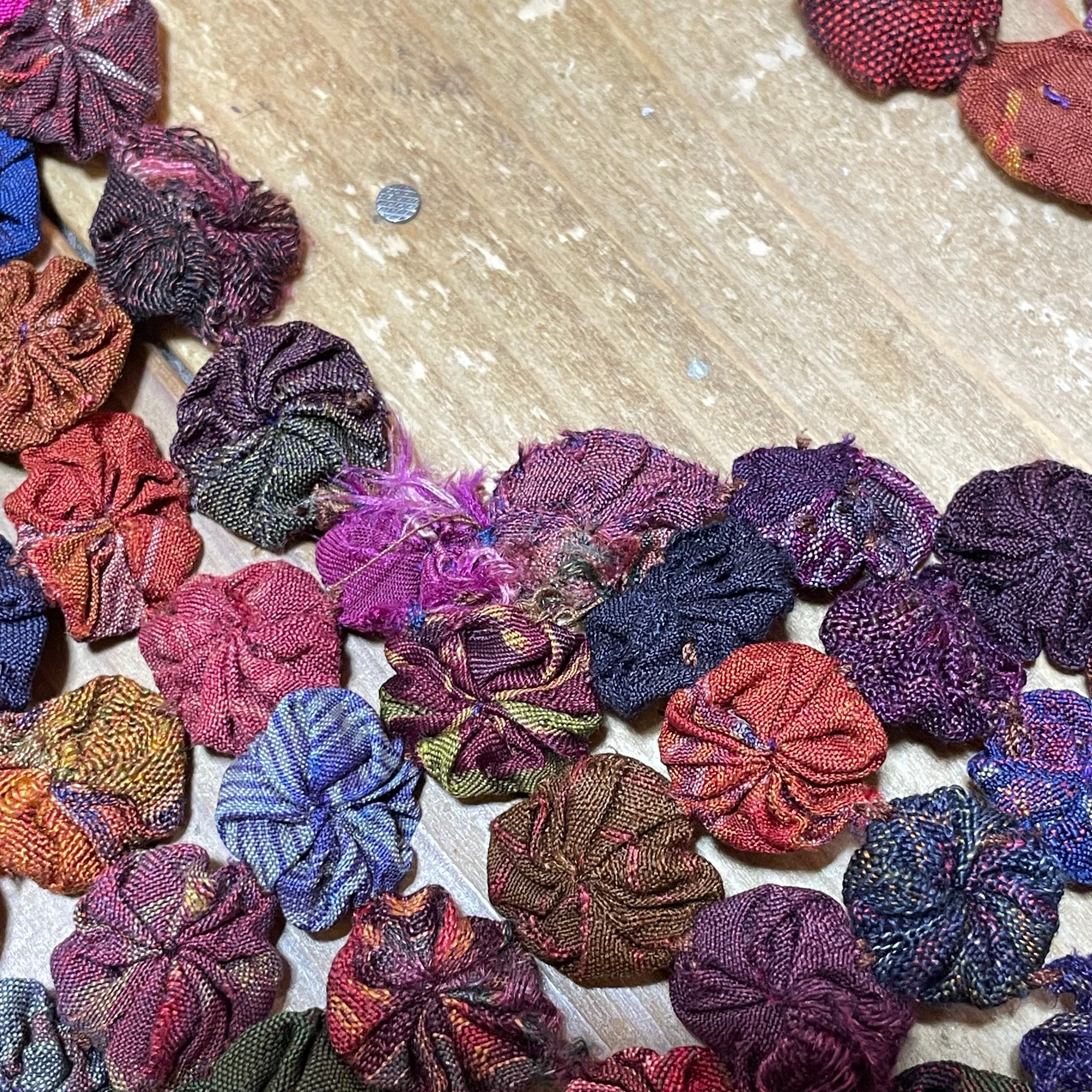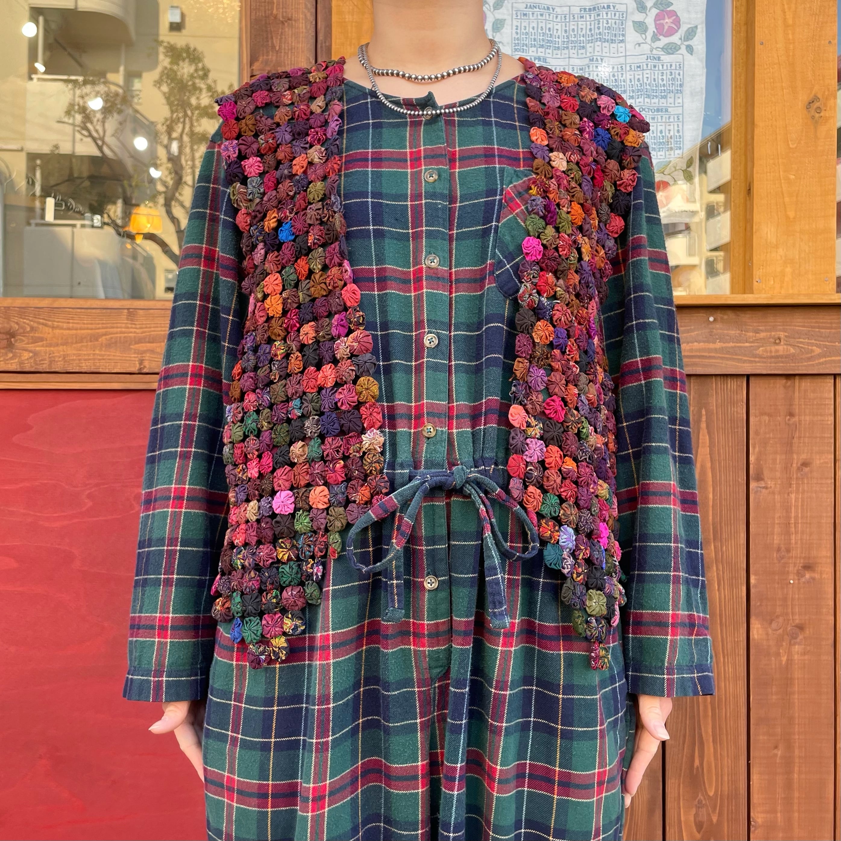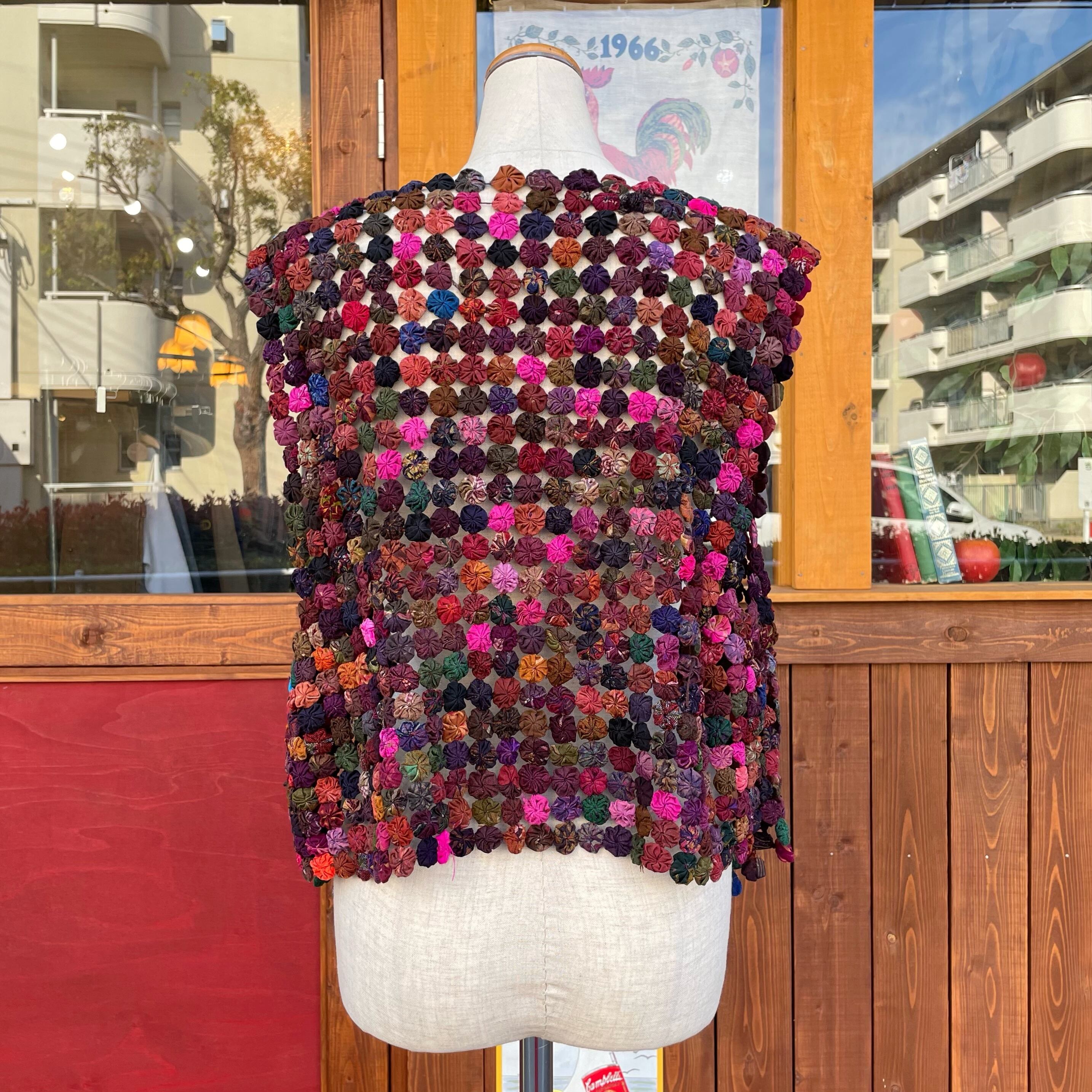 ヨーヨーキルトを繋ぎ合わせて作られたベストです。