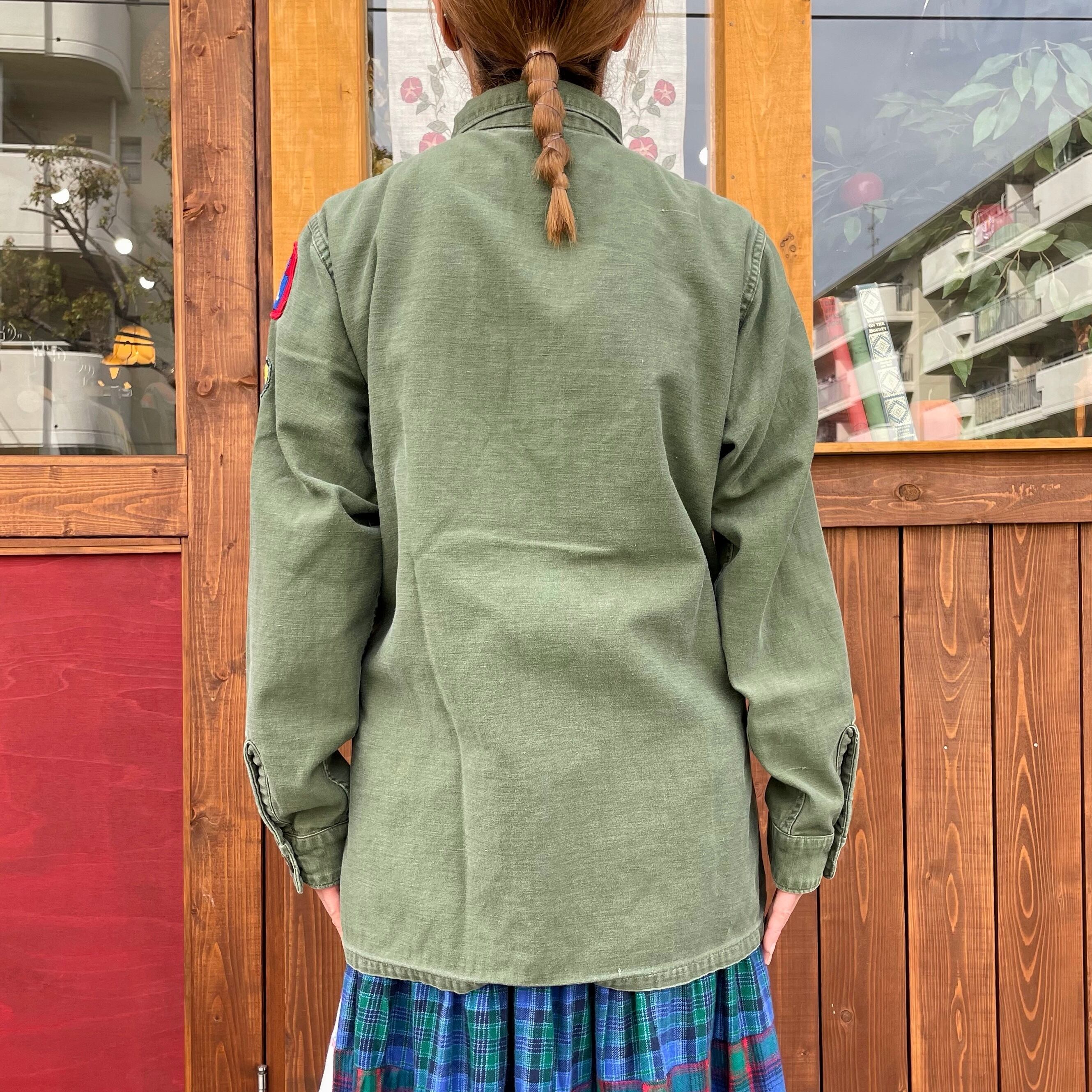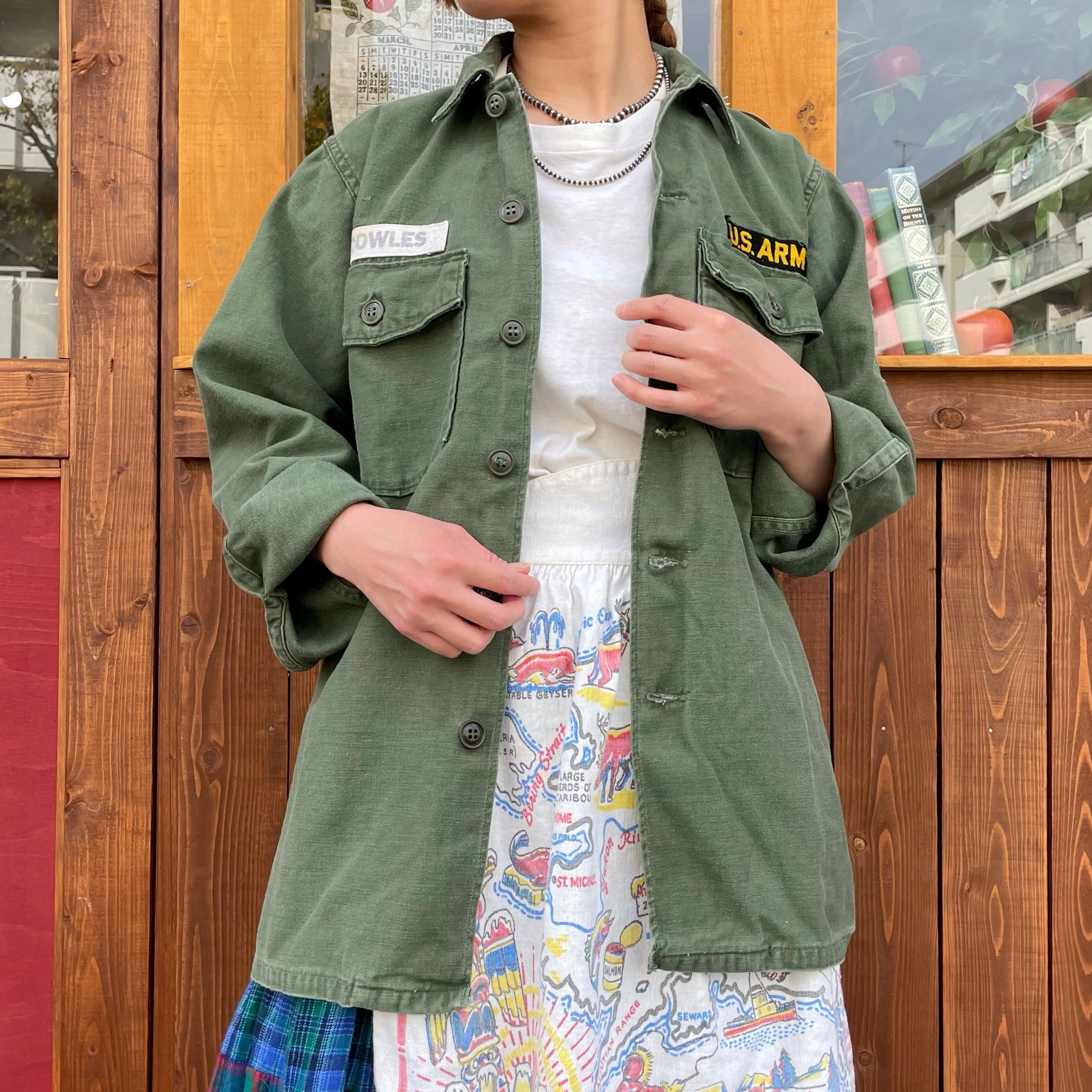 胸元と両腕にワッペンが付いているので古着らしいポップな印象になりますよ。