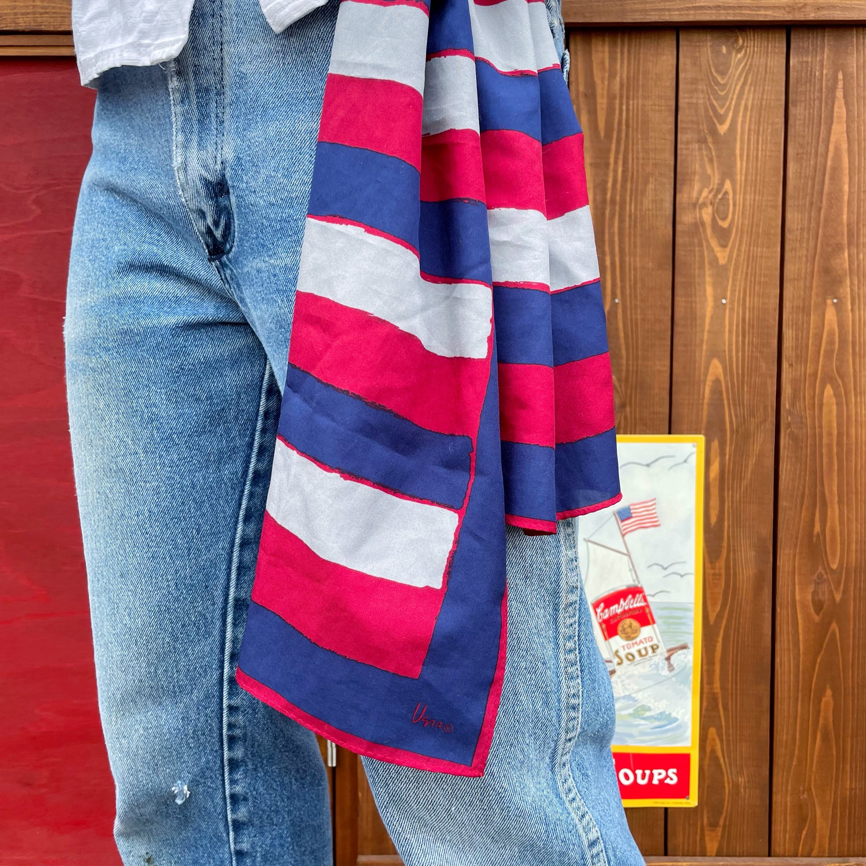 横に長いタイプのスカーフなので巻きやすくいろんなアレンジができますよ。