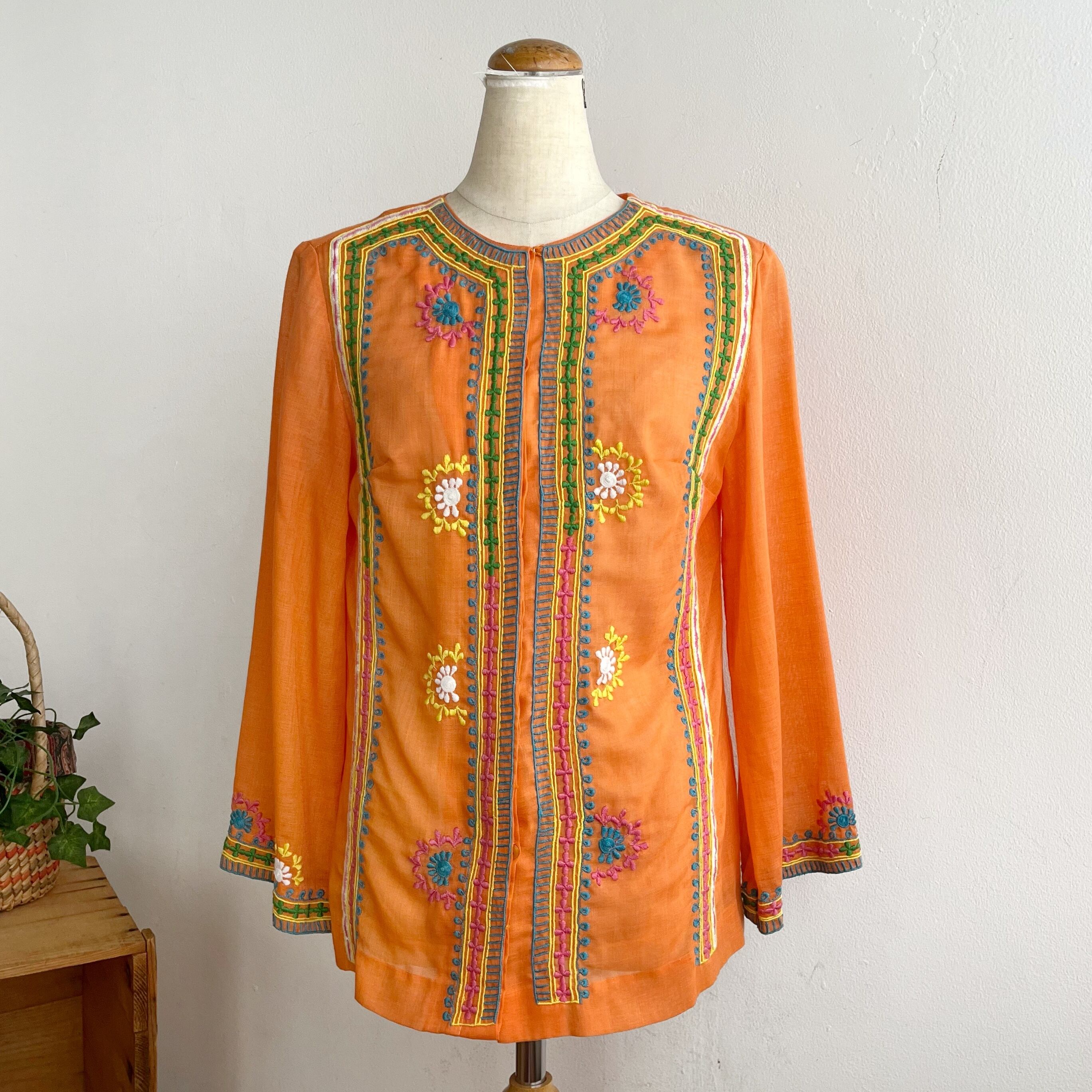 独特の鮮やかな刺繍とオレンジボディが目を惹くフィリンピン刺繍のシャツになります。