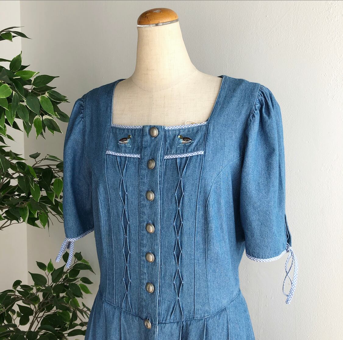 袖や胸元にはギンガムチェックのパイピング、カモ刺繍が施されていてとても可愛いデザインに。