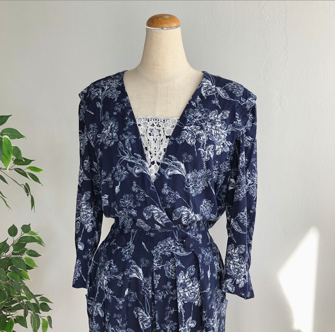 ボタニカルフラワー柄のレトロなワンピースです。