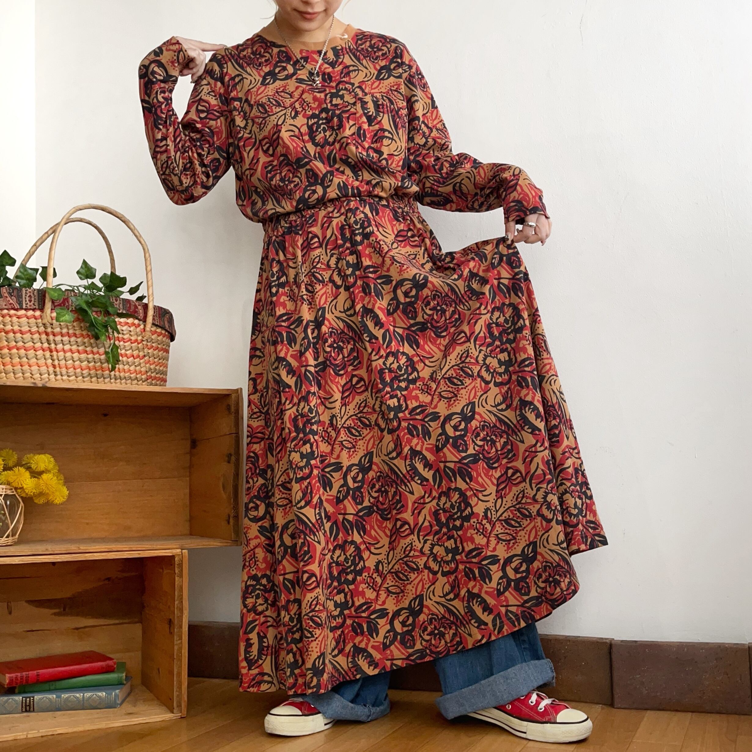 アートなお花柄のワンピースです。