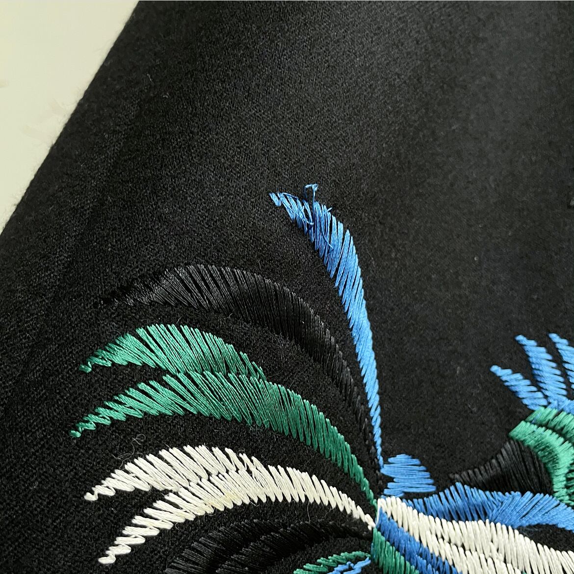 刺繍の反対側には鹿角ボタン、ウエストや裾にはコードラインが入っていてこだわりの見えるデザインになっています。