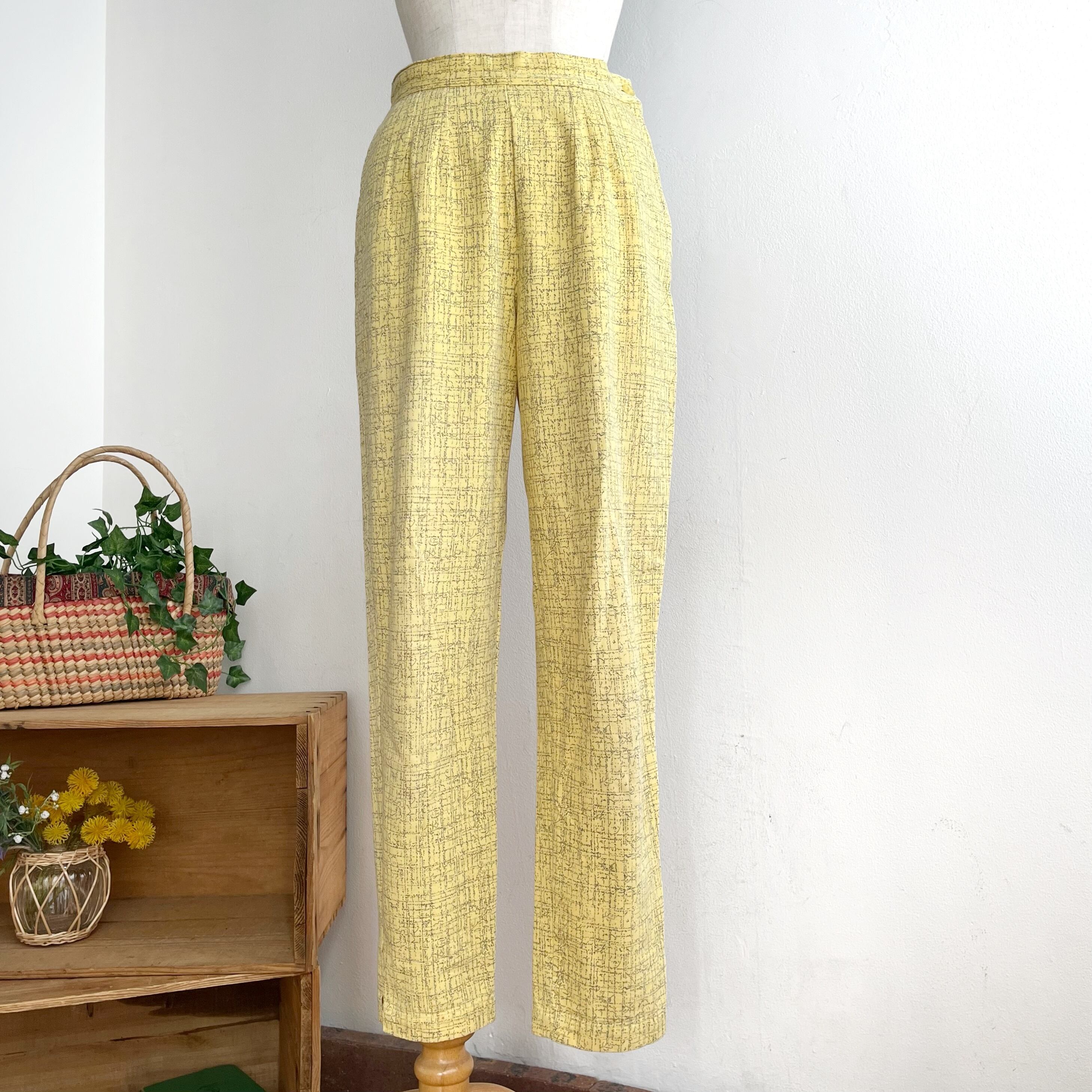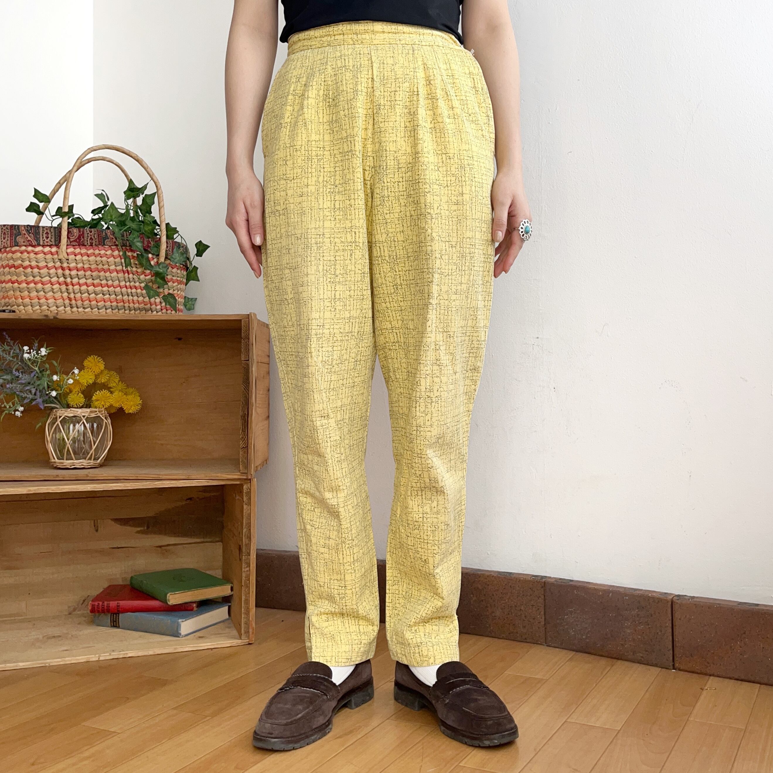 シルエットの綺麗なライトイエローのテーパードパンツです。