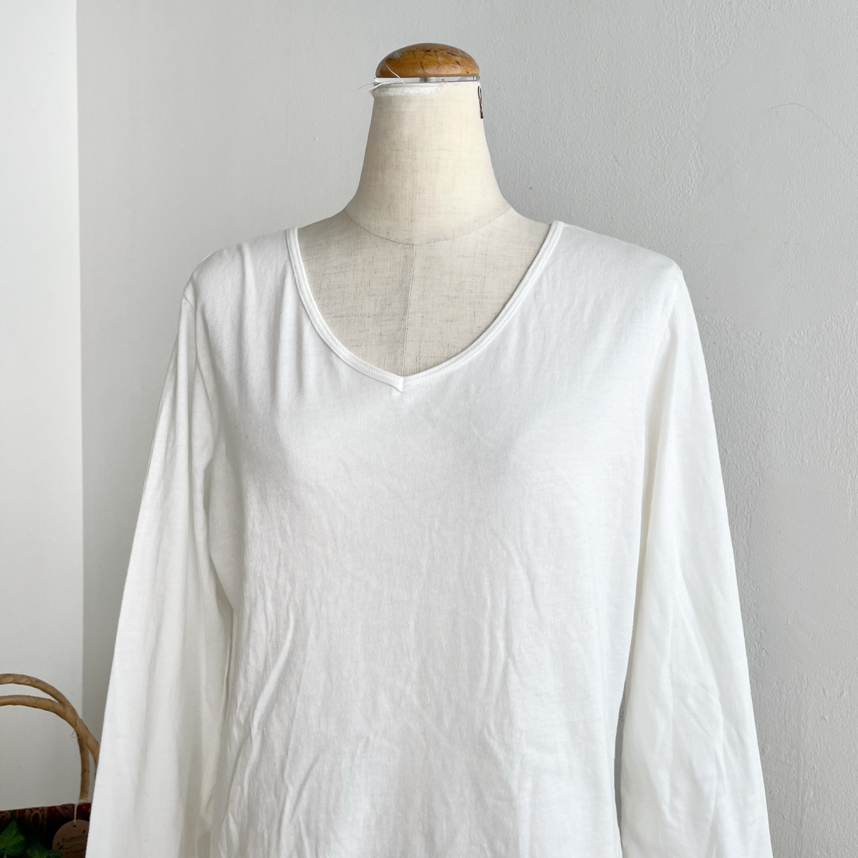 浅めのVネックでデコルテが綺麗に見えるgoodシルエット。