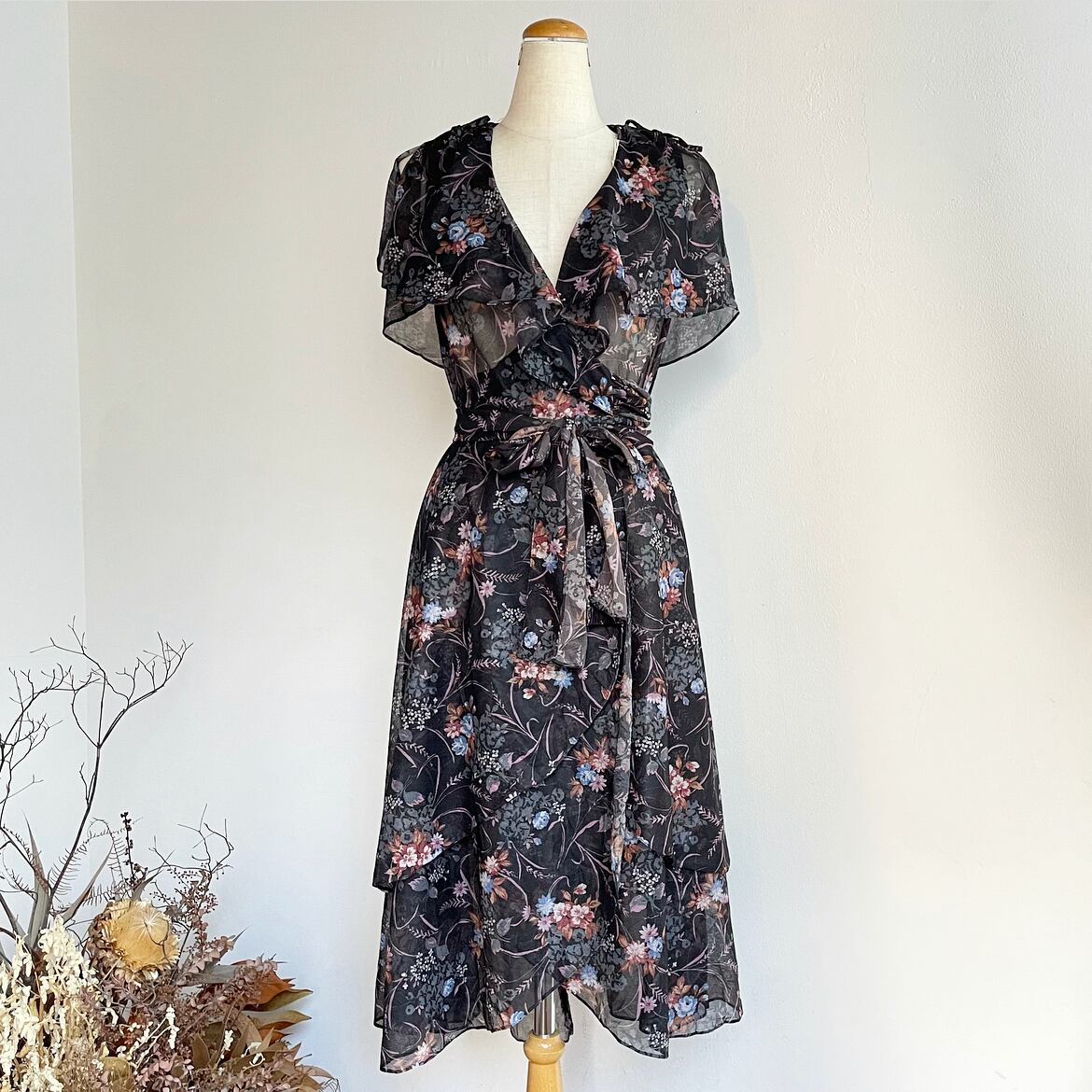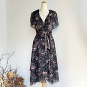 flower pattern sheer wrap dress