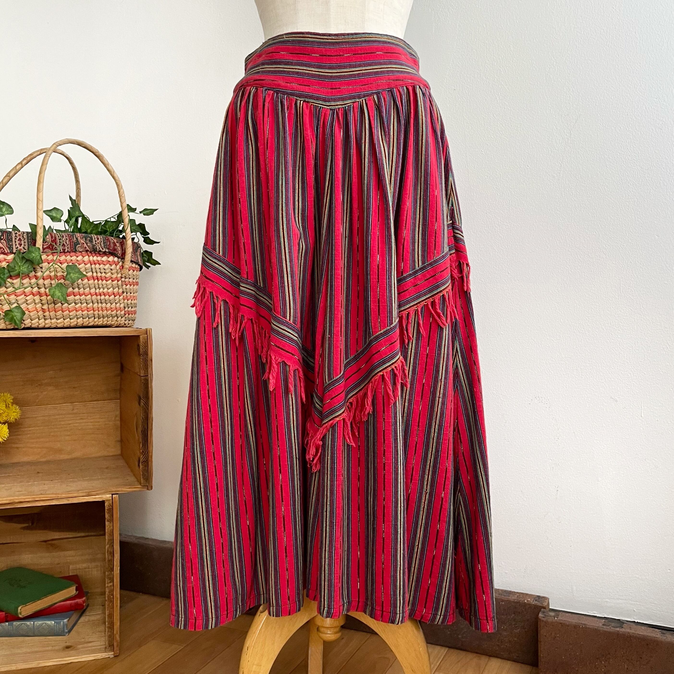 stripe×fringe native design skirt