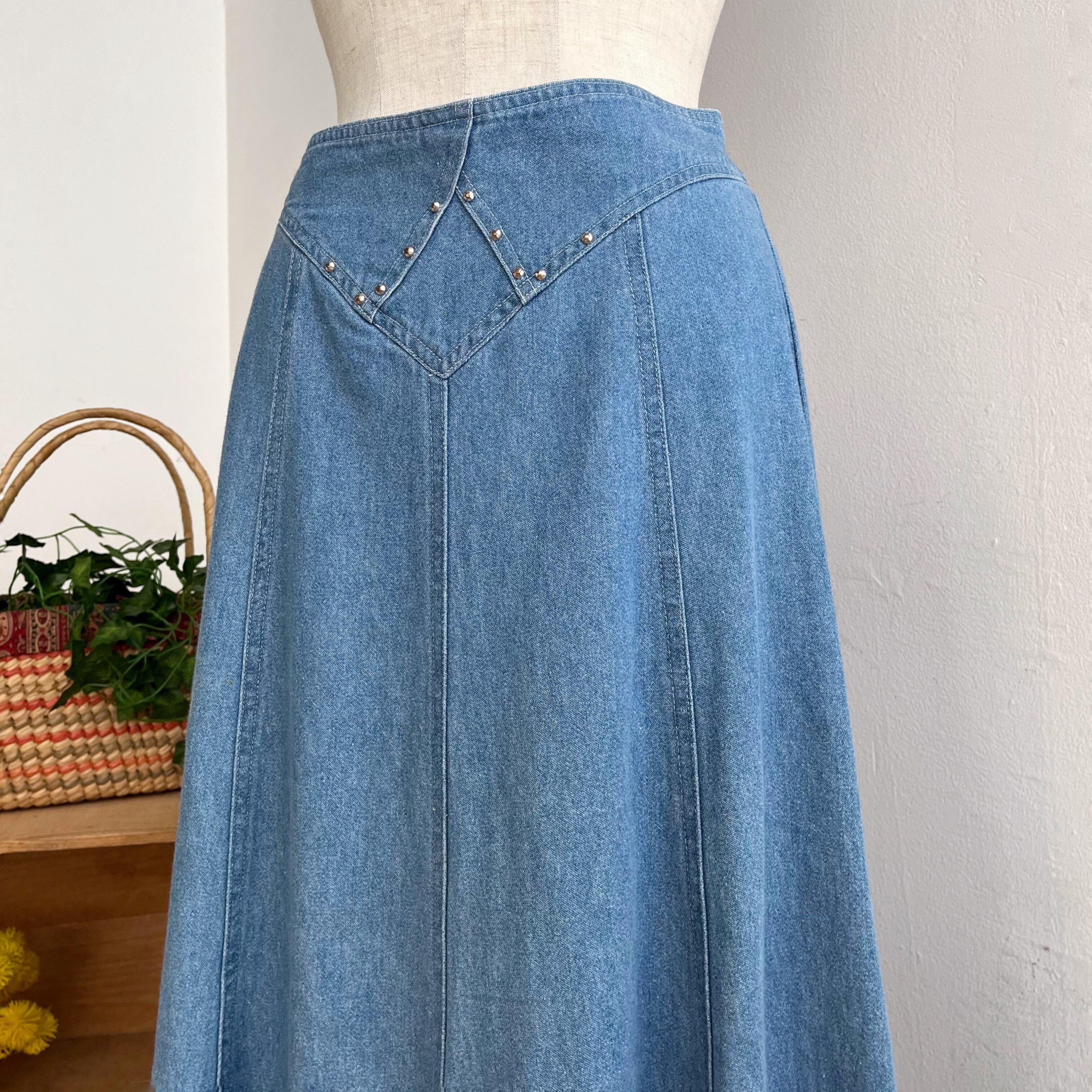 ウエスト部分にスタッズ がデザインされたデニムスカートです。