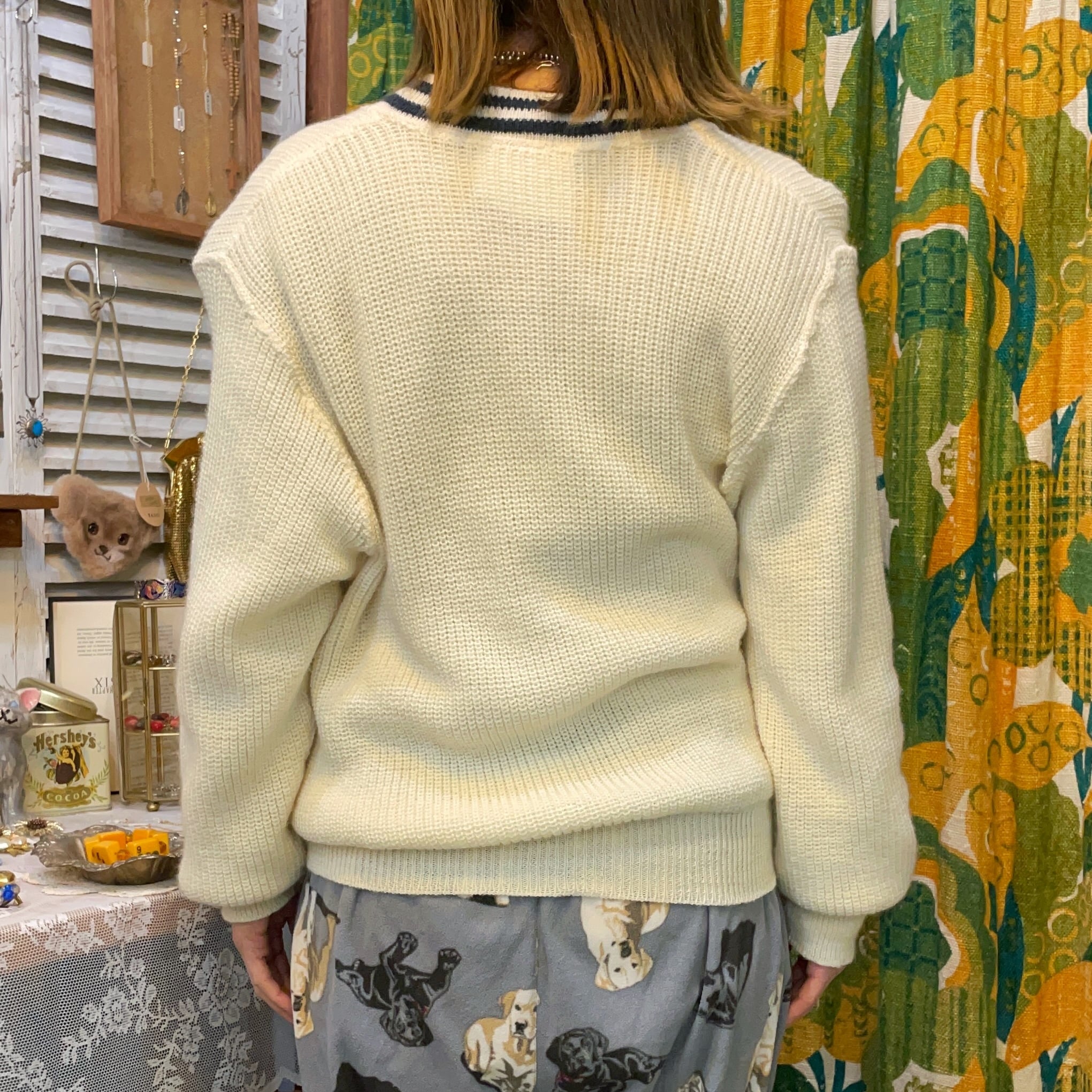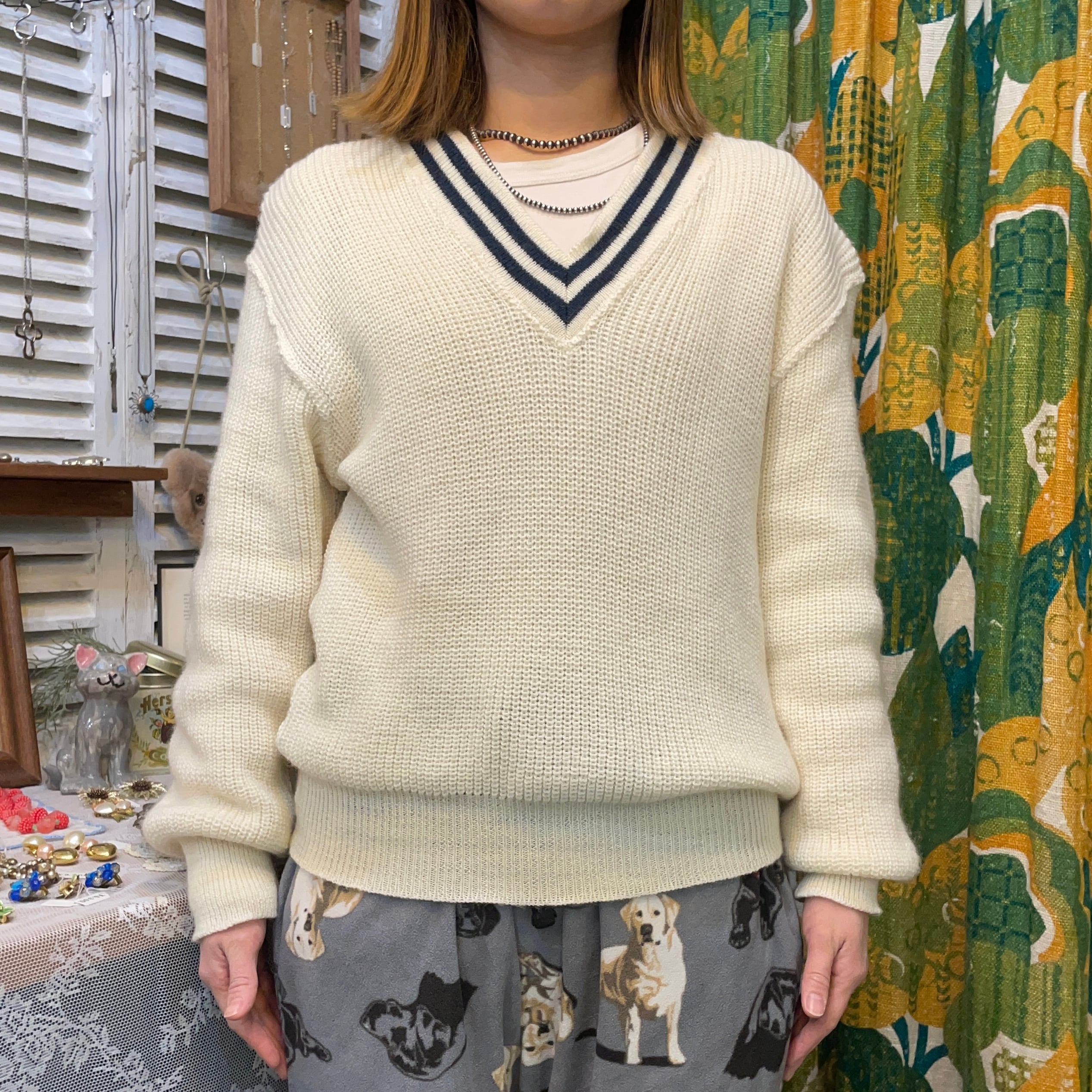 シャツを中に着てプレッピーに着たり、デニムなどと合わせてカジュアルに着るのも可愛いですね◎