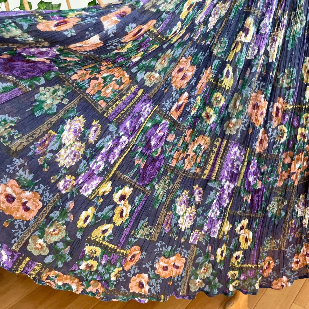 カラフルなお花柄がデザインされたインド綿スカートです。