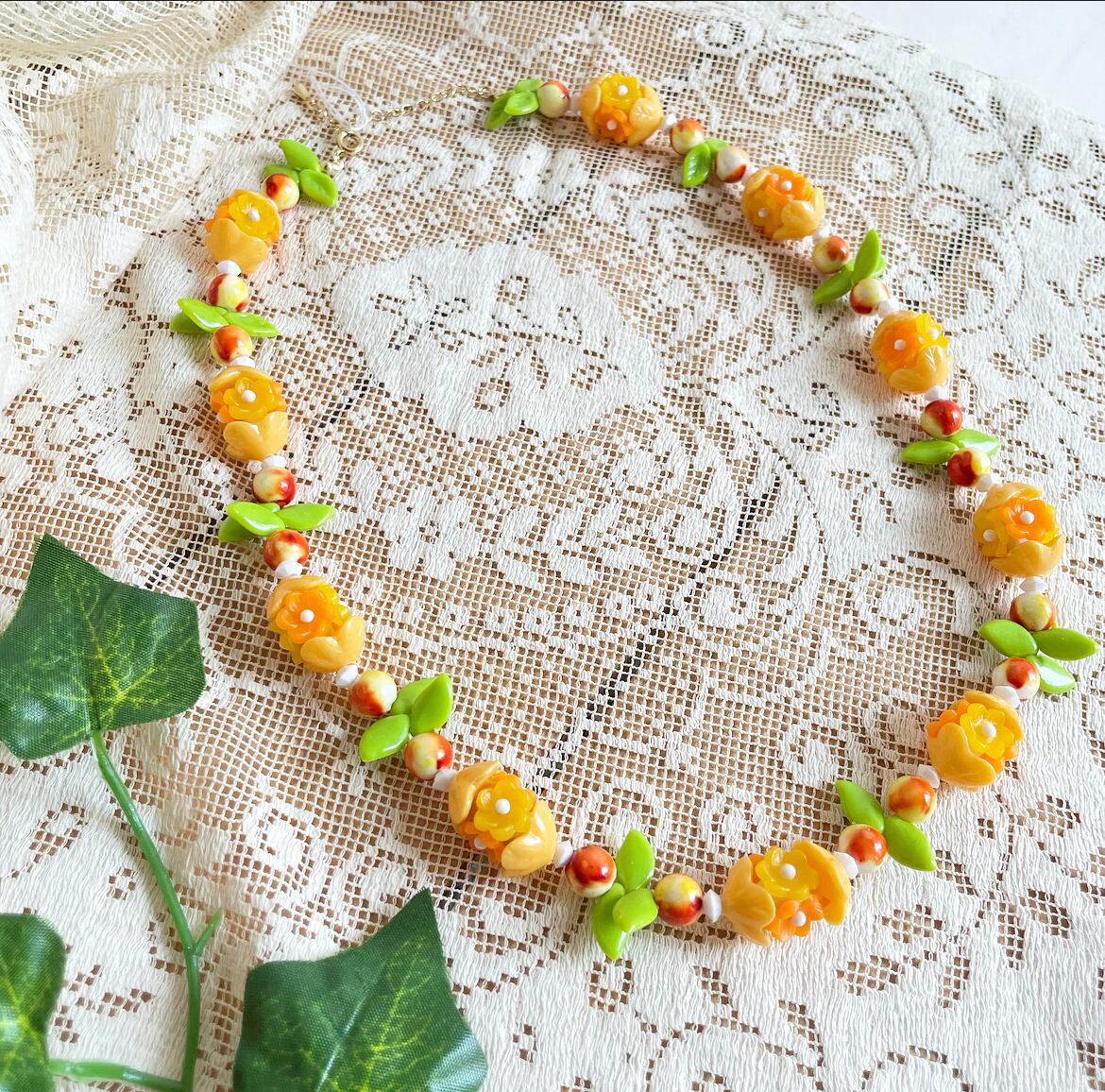 yellow flower beads necklace