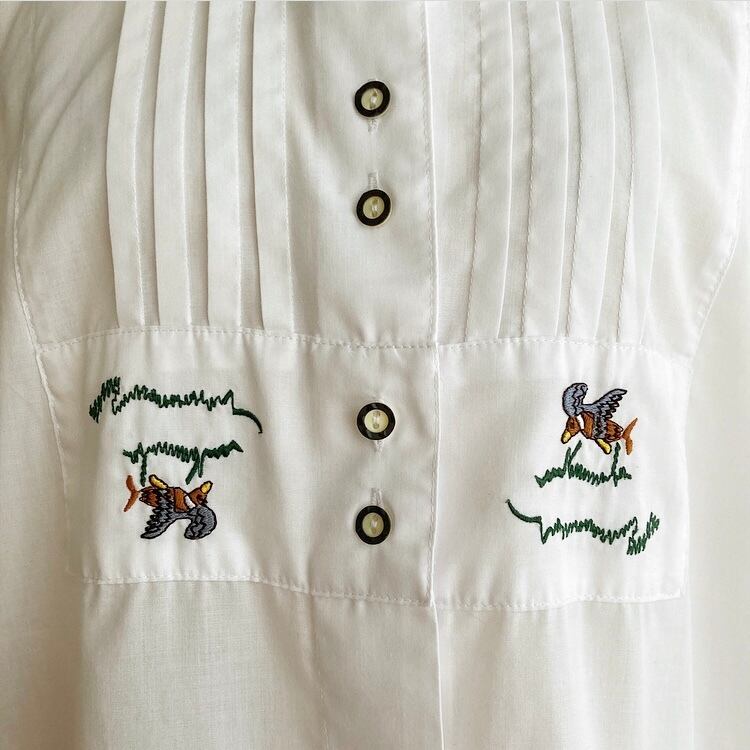 全体のシルエットはシャツですが、袖がふわっとボリュームがありブラウスの様なガーリーさもある良いとこ取りな一着。