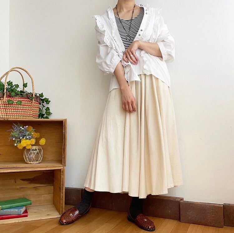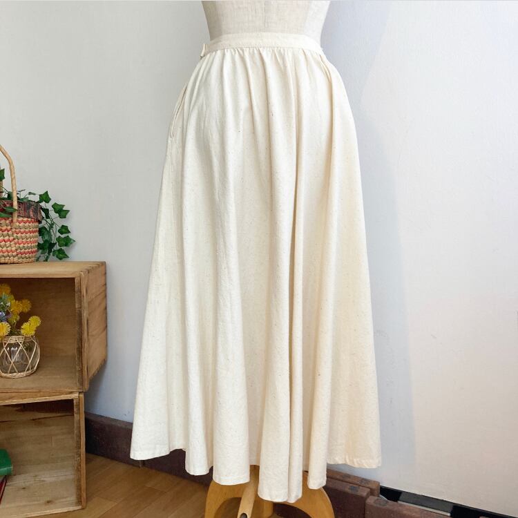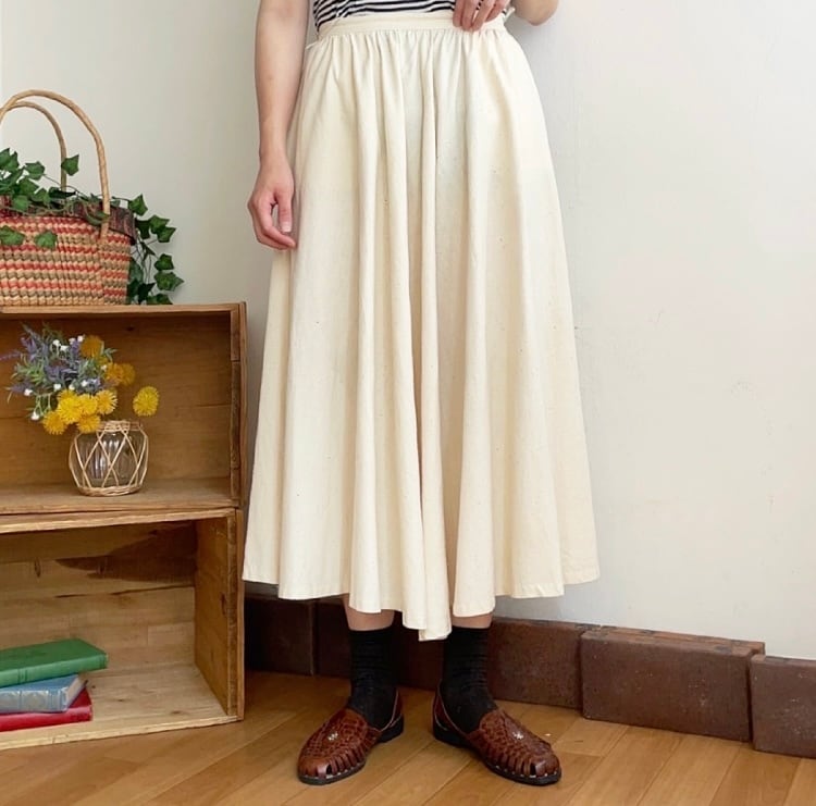 シルクとコットンの混紡素材のサーキュラースカートです。