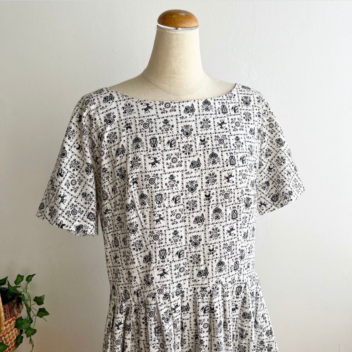 ホワイトにブラックで柄が入っているので、ガーリーになり過ぎないのもポイント。スニーカーと合わせてカジュアルダウンしても◎