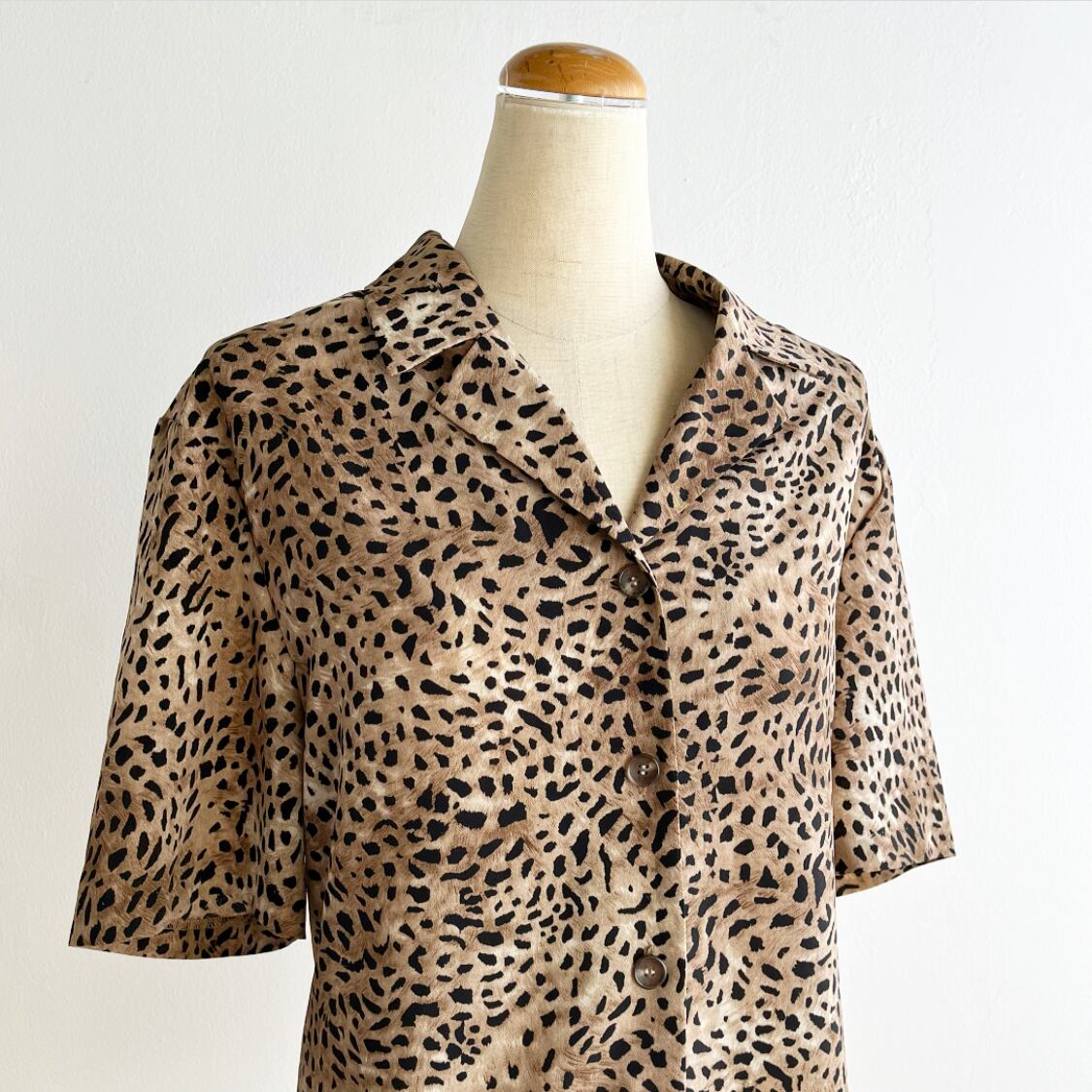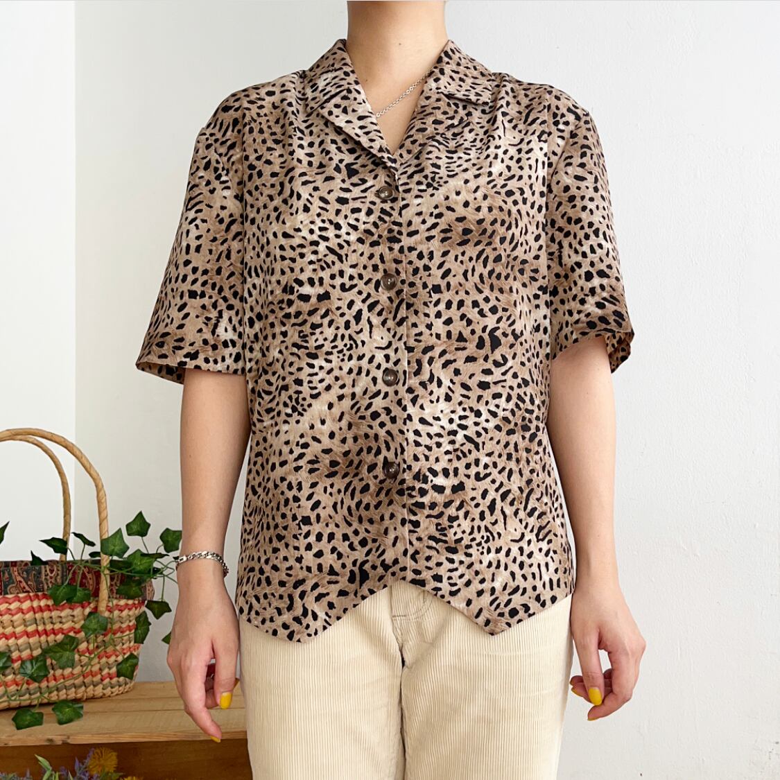 フロントの裾のデザインが個性的なレオパード柄のシャツです。