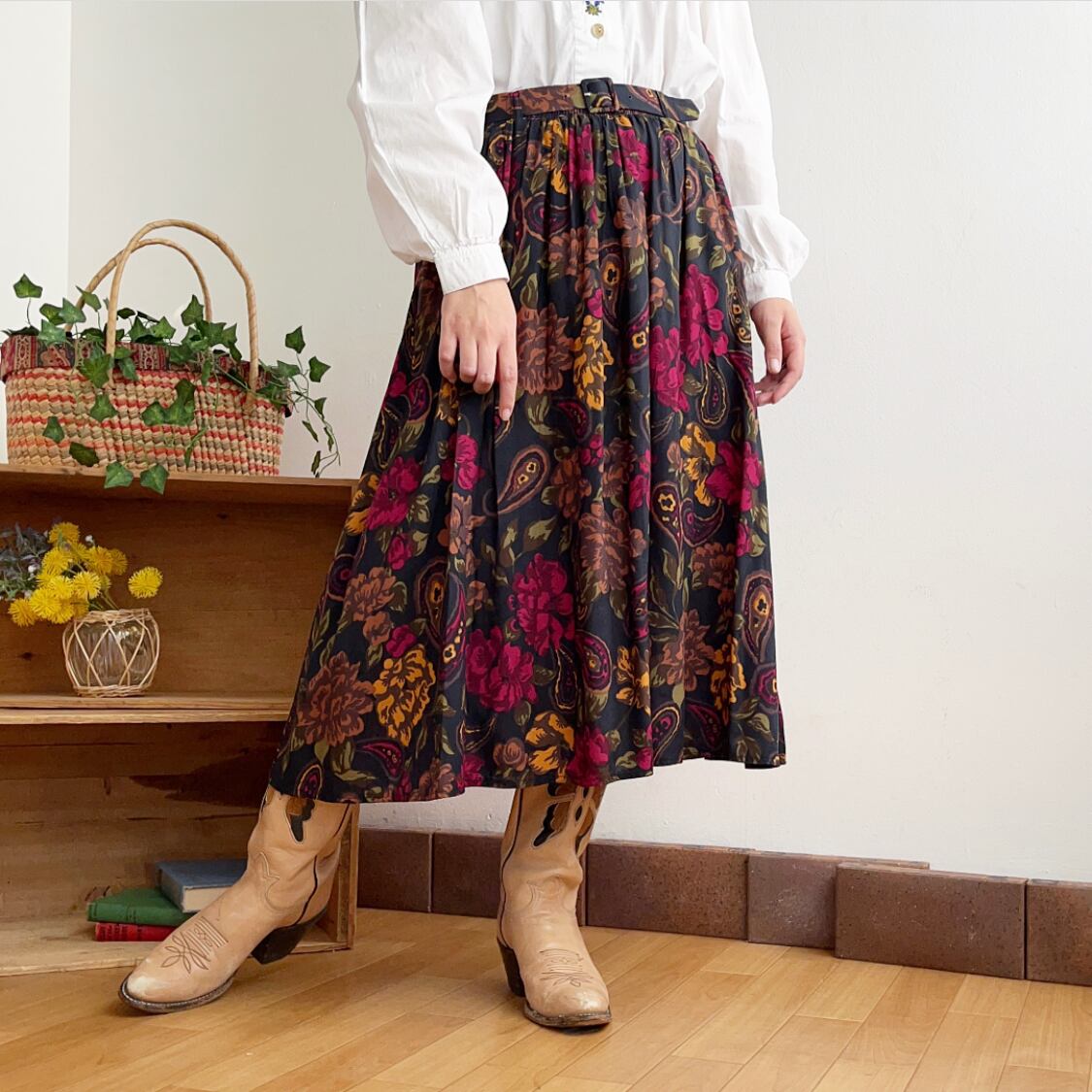 flower×paisley pattern skirt