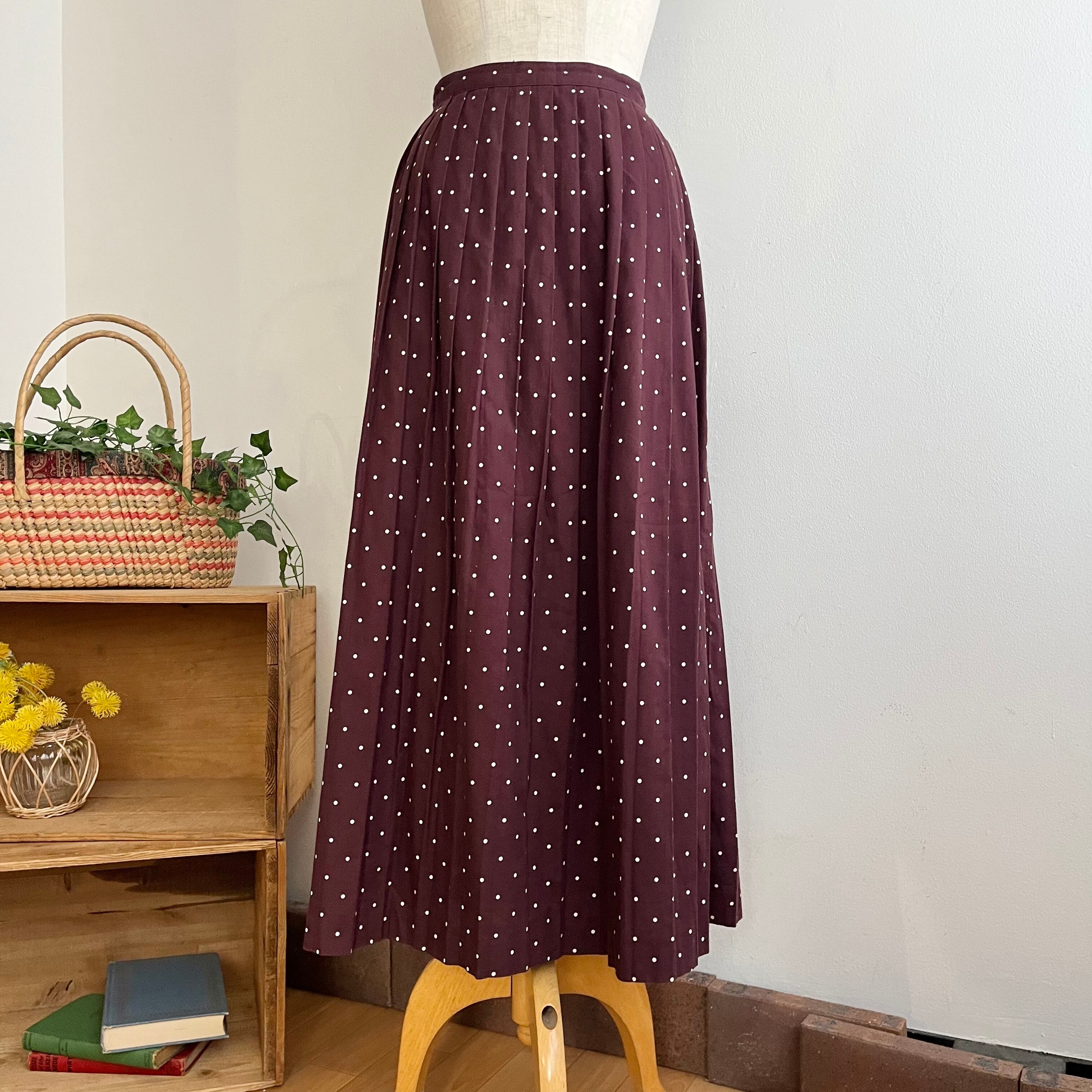 バーガンディーのボディに白いドット柄が可愛いプリーツスカートです。