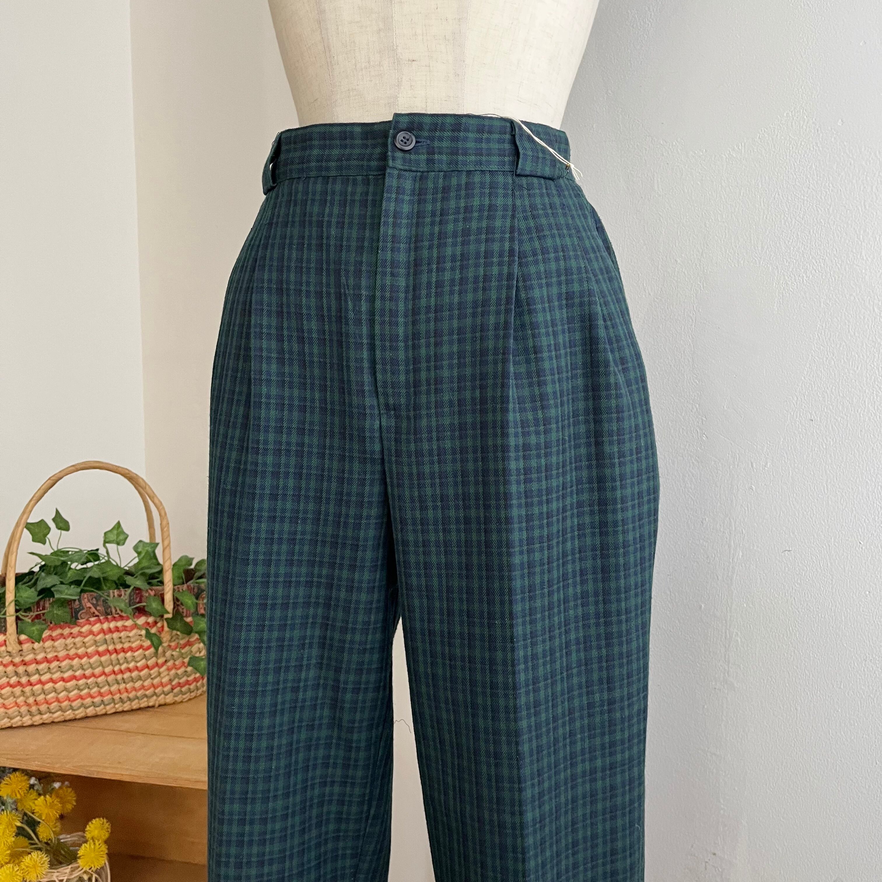 ダークグリーンのチェック柄スラックスです。