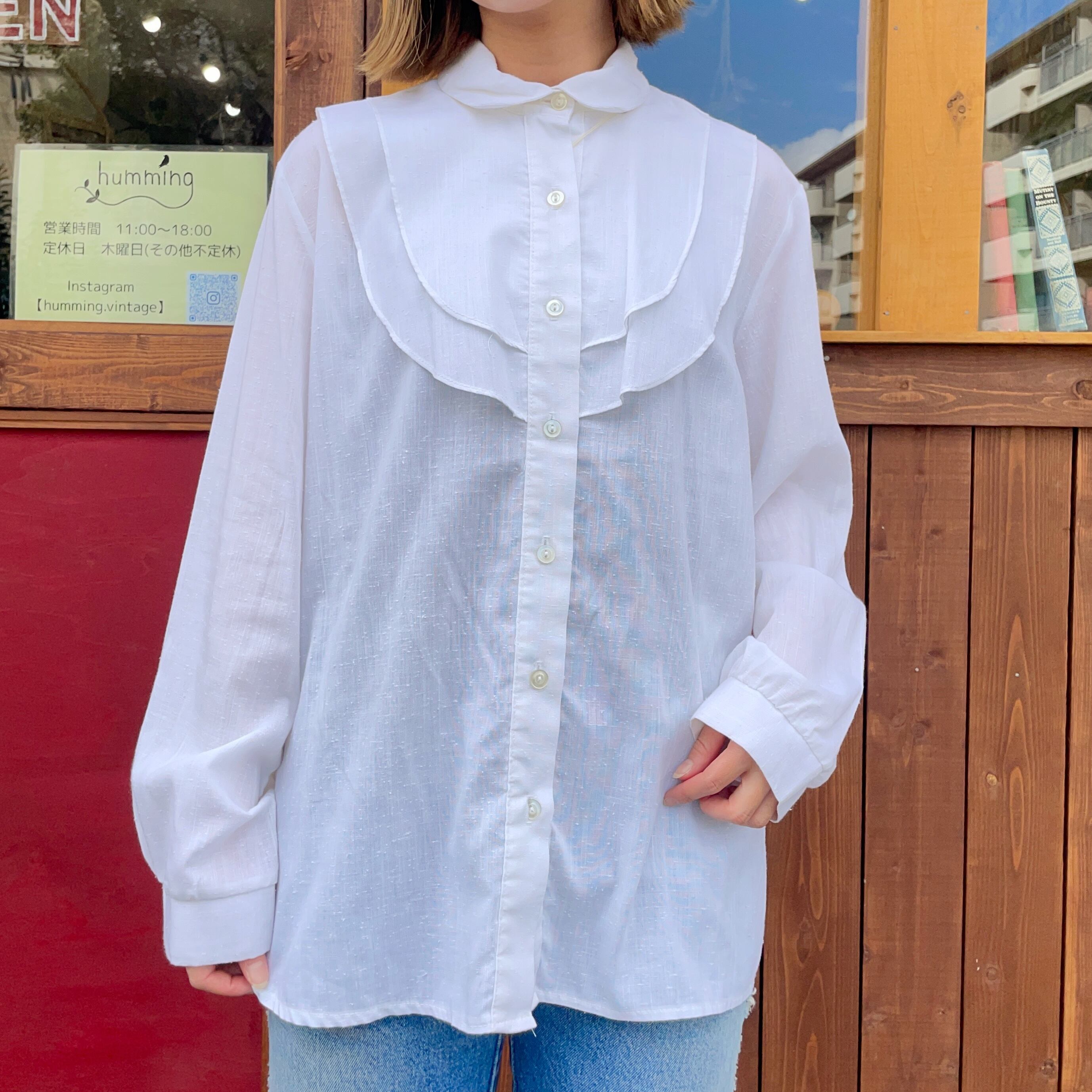 小さめな丸襟にラウンドデザインの胸元が可愛い一着。