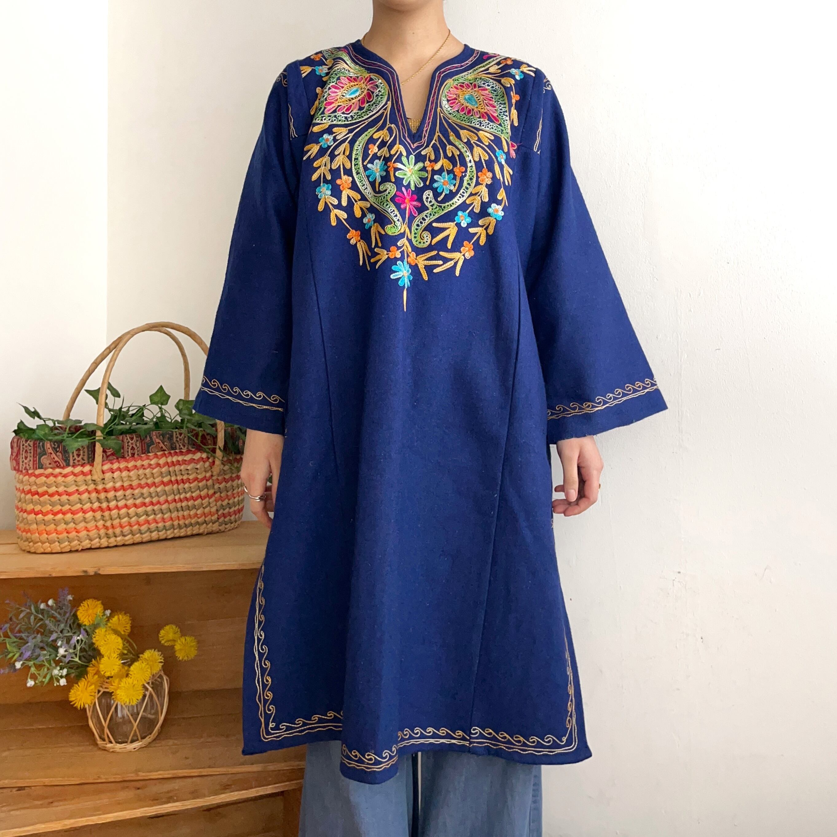vintageのウール素材の刺繍ワンピースです。