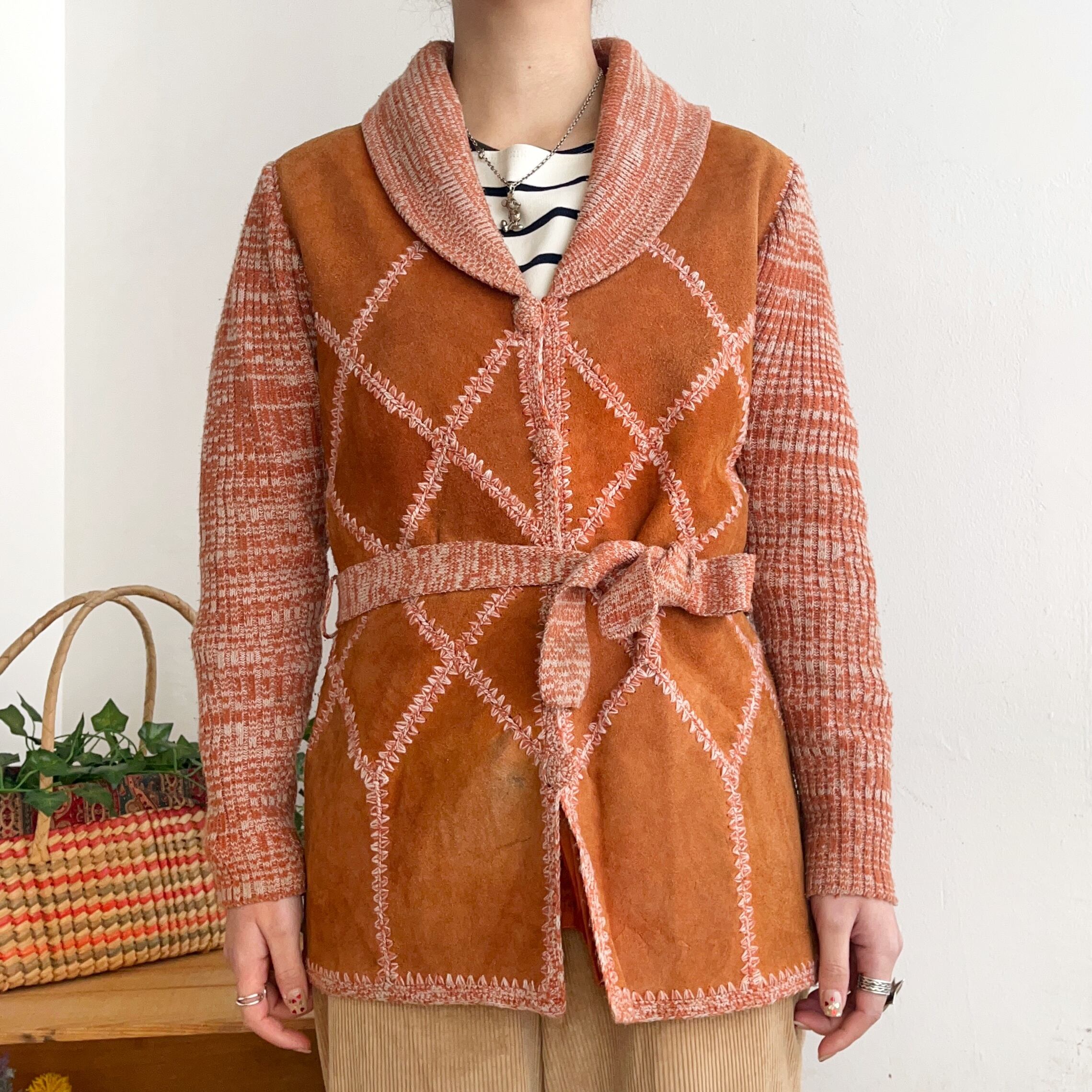 70’s vintage knit×leather switching jacket