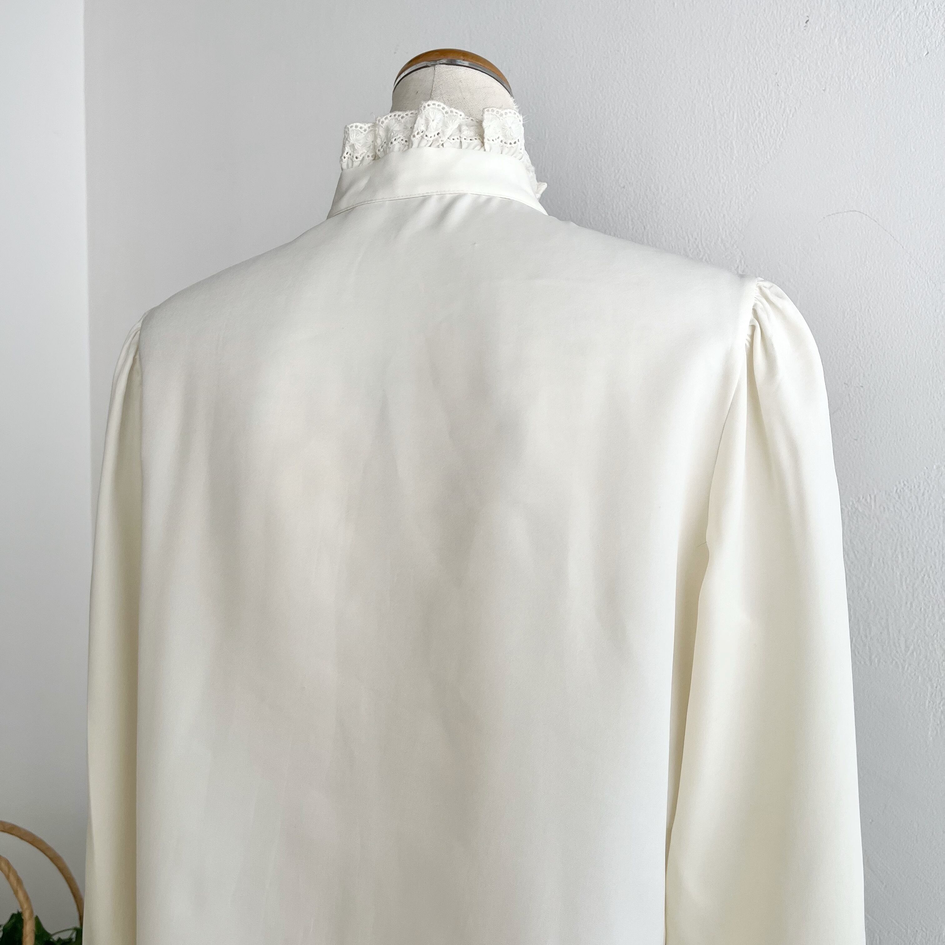 たっぷりとデザインされたカットワーク刺繍が可愛いブラウスです。