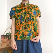 鮮やかなボタニカル柄のブラウスです。