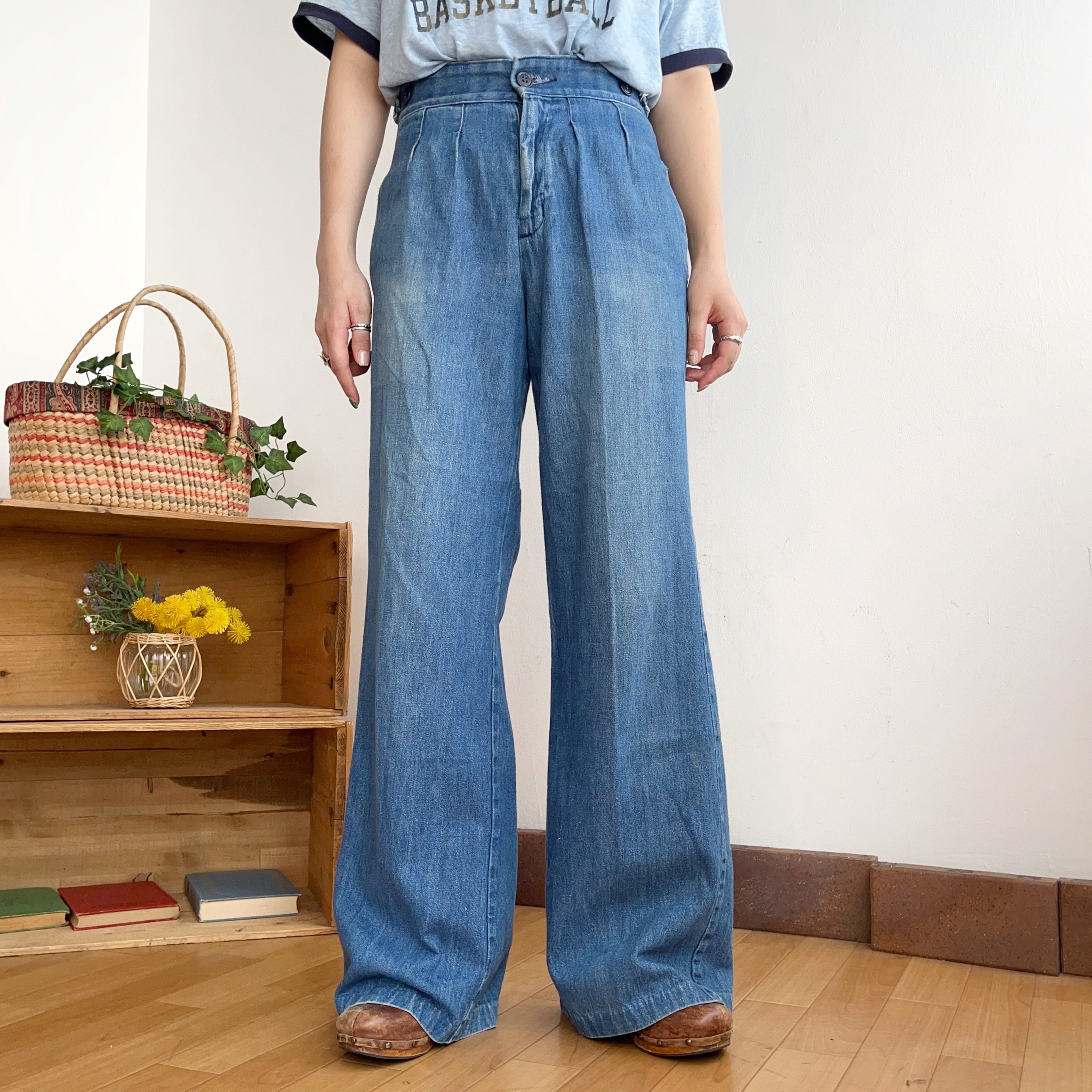 70年代頃のvintageのライトオンスのデニムワイドパンツです。
