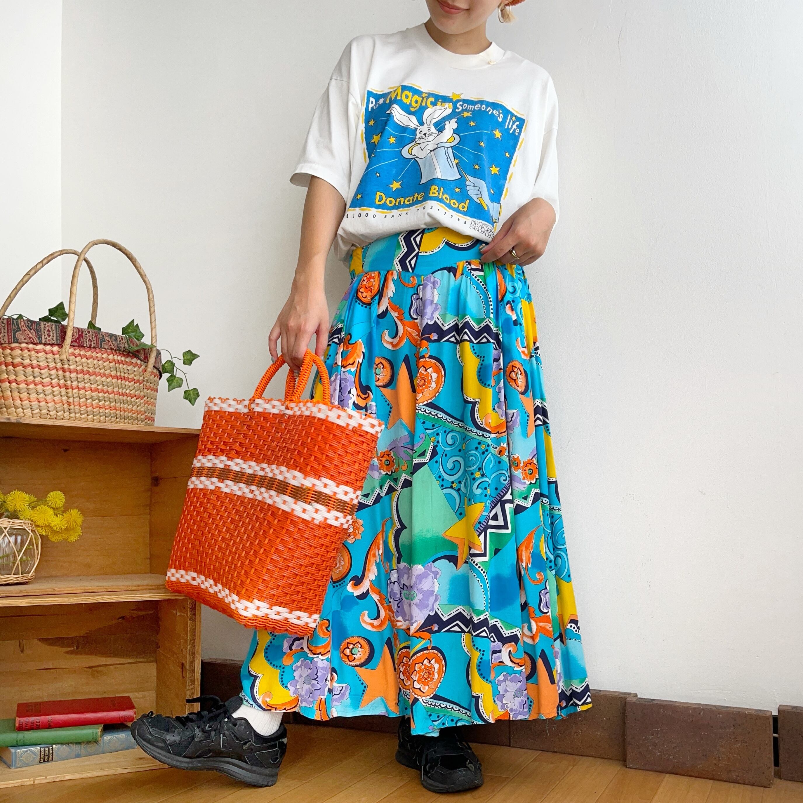 存在感たっぷりなスカートなので、シンプルにTシャツなどと合わせるだけでも◎