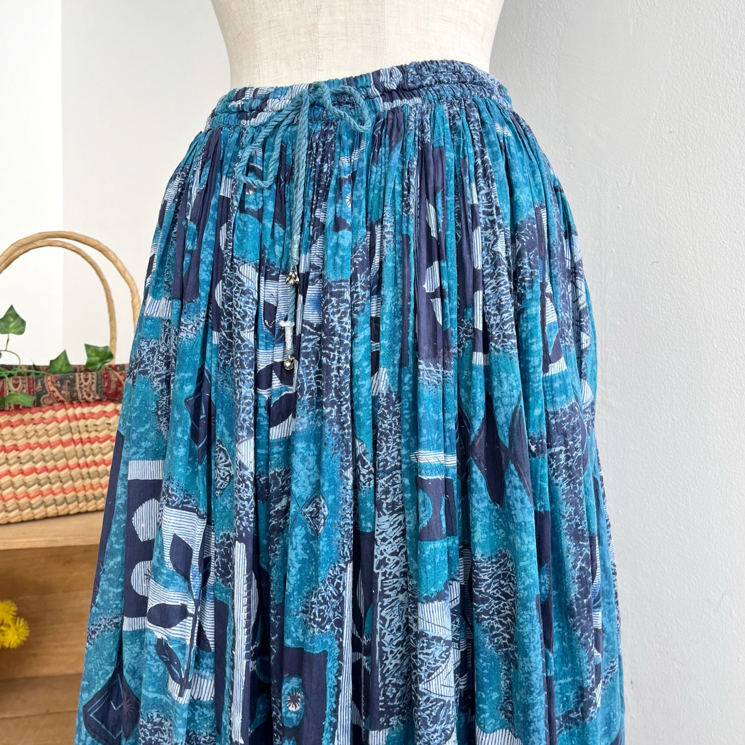 エスニックなデザインが多いイメージですが、こちらはアートな柄と鮮やかなブルーの色合いが大人っぽさを感じる一着。