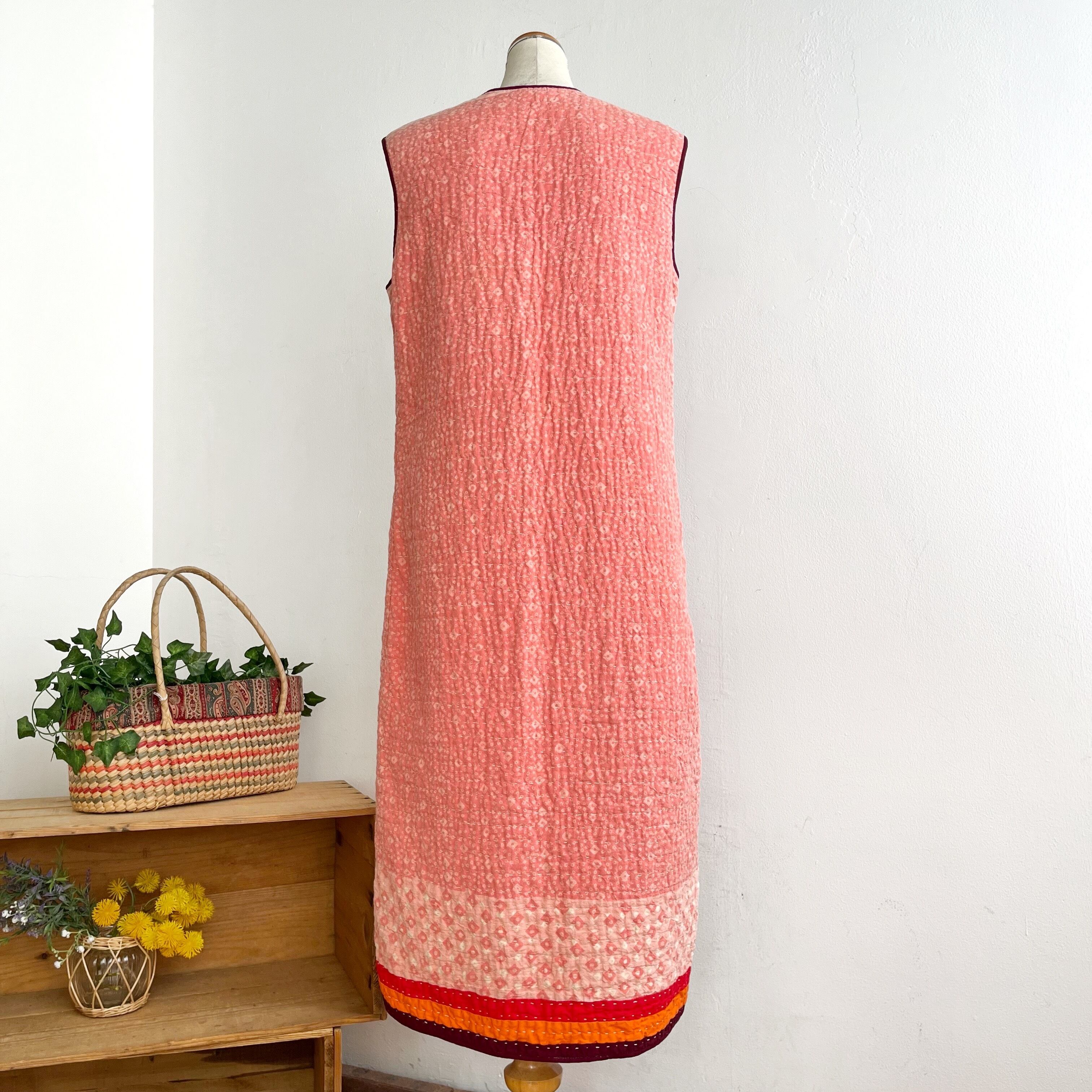 オリエンタルな雰囲気の柄に、全体に刺し子が施されたスペシャルなキルティングベストです。