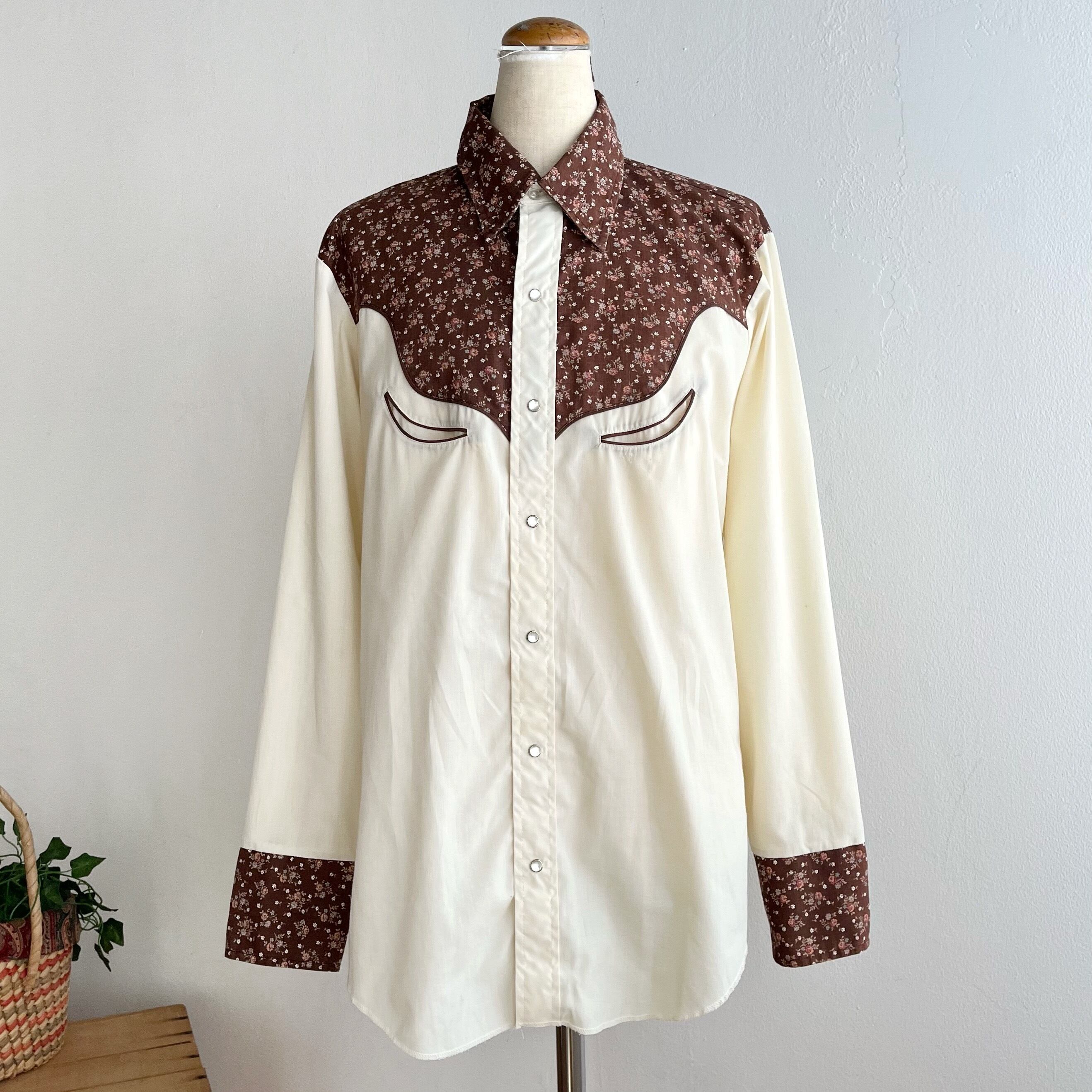 ブラウンのお花柄がキュートなウエスタンシャツです。