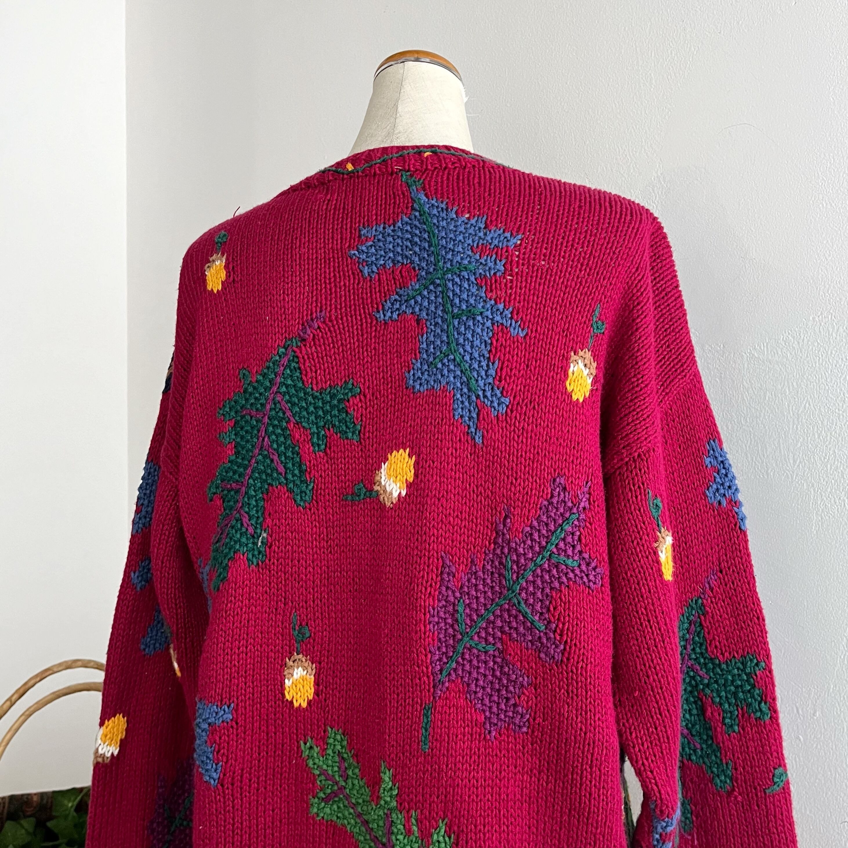 季節ごとのお家の様子が描かれたハンドニットカーディガンです。