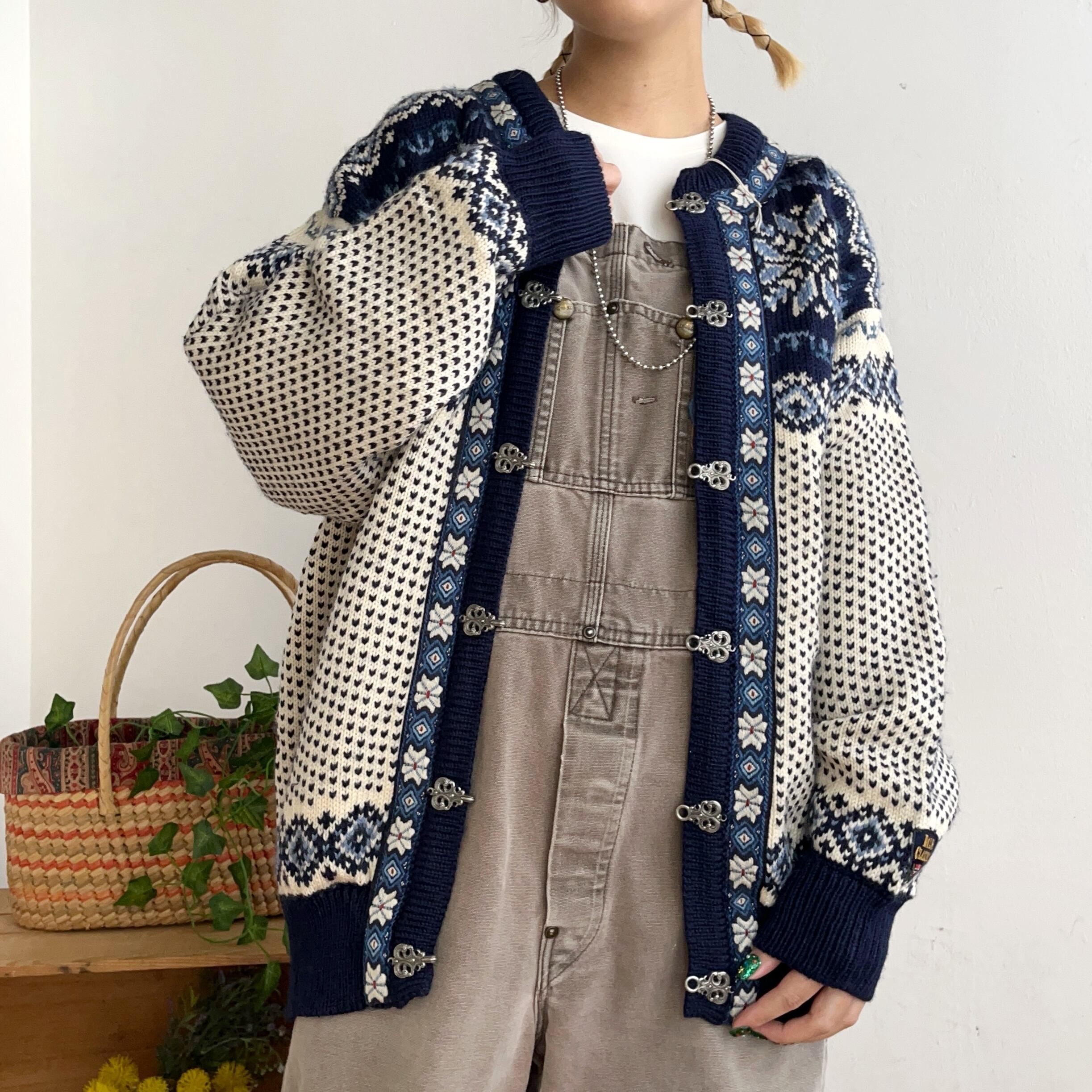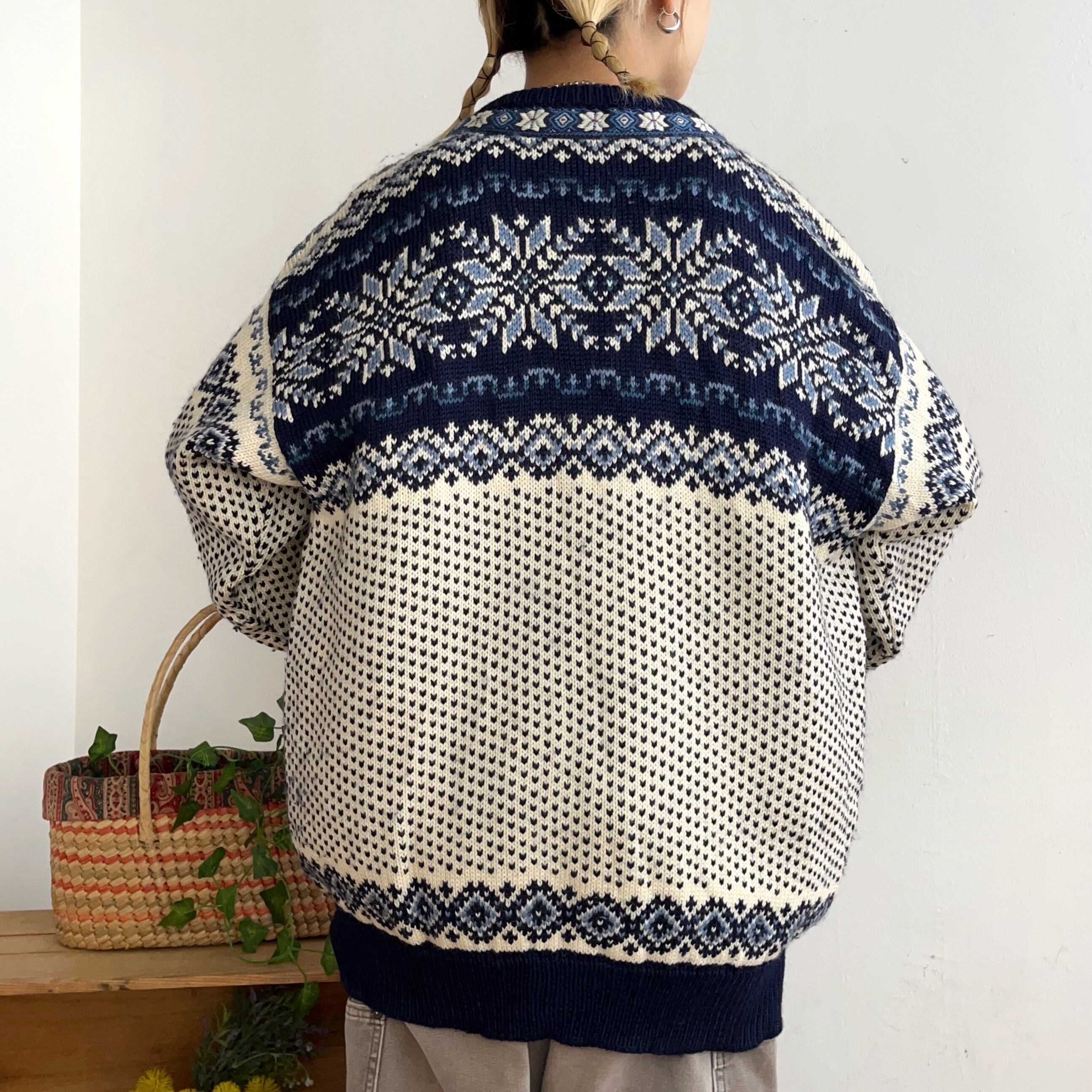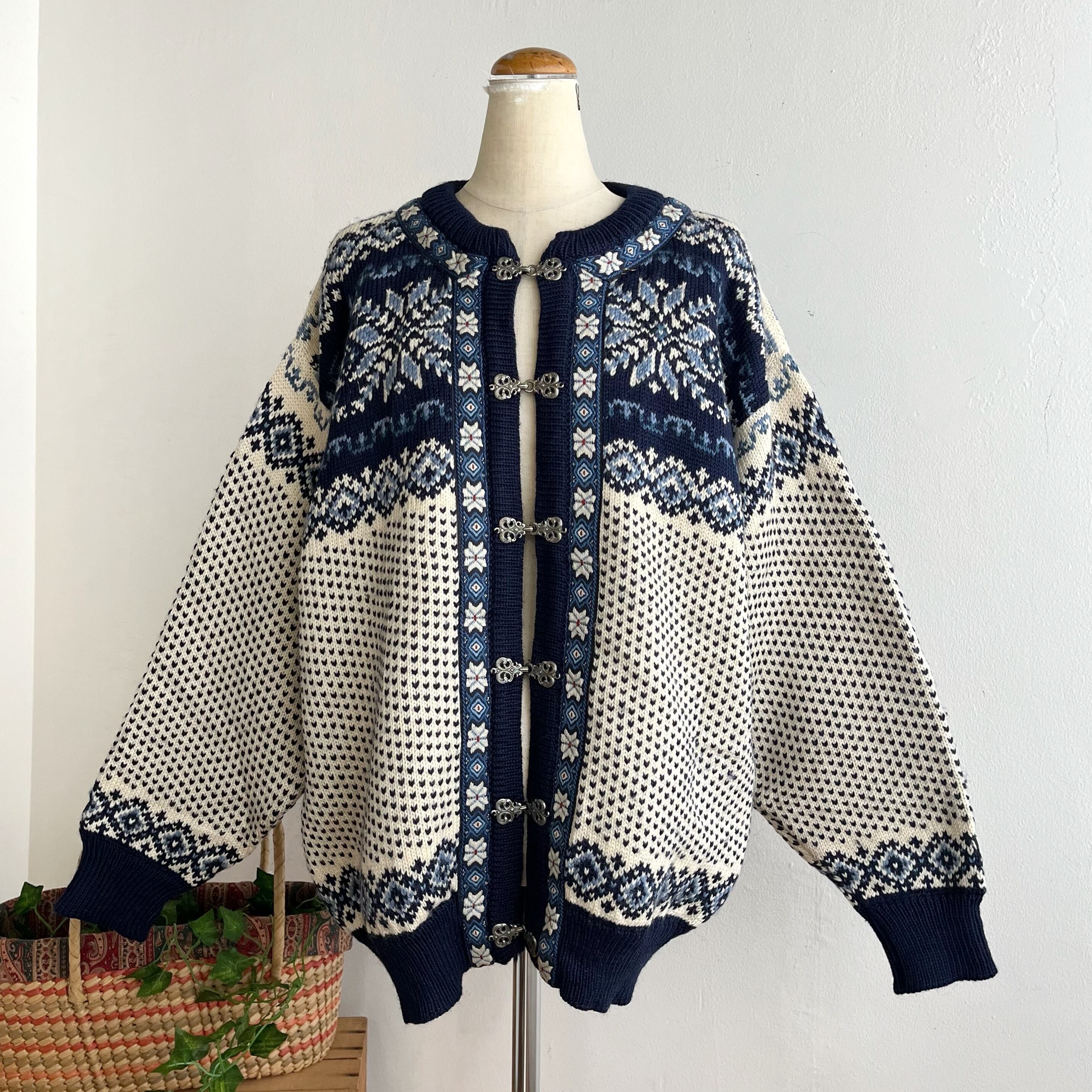 ノルウェー製の上質なウールのノルディックニットカーディガンです。