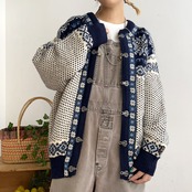 フックボタンに、総柄でデザインされたノルディック柄がとてもかわいらしい一着。