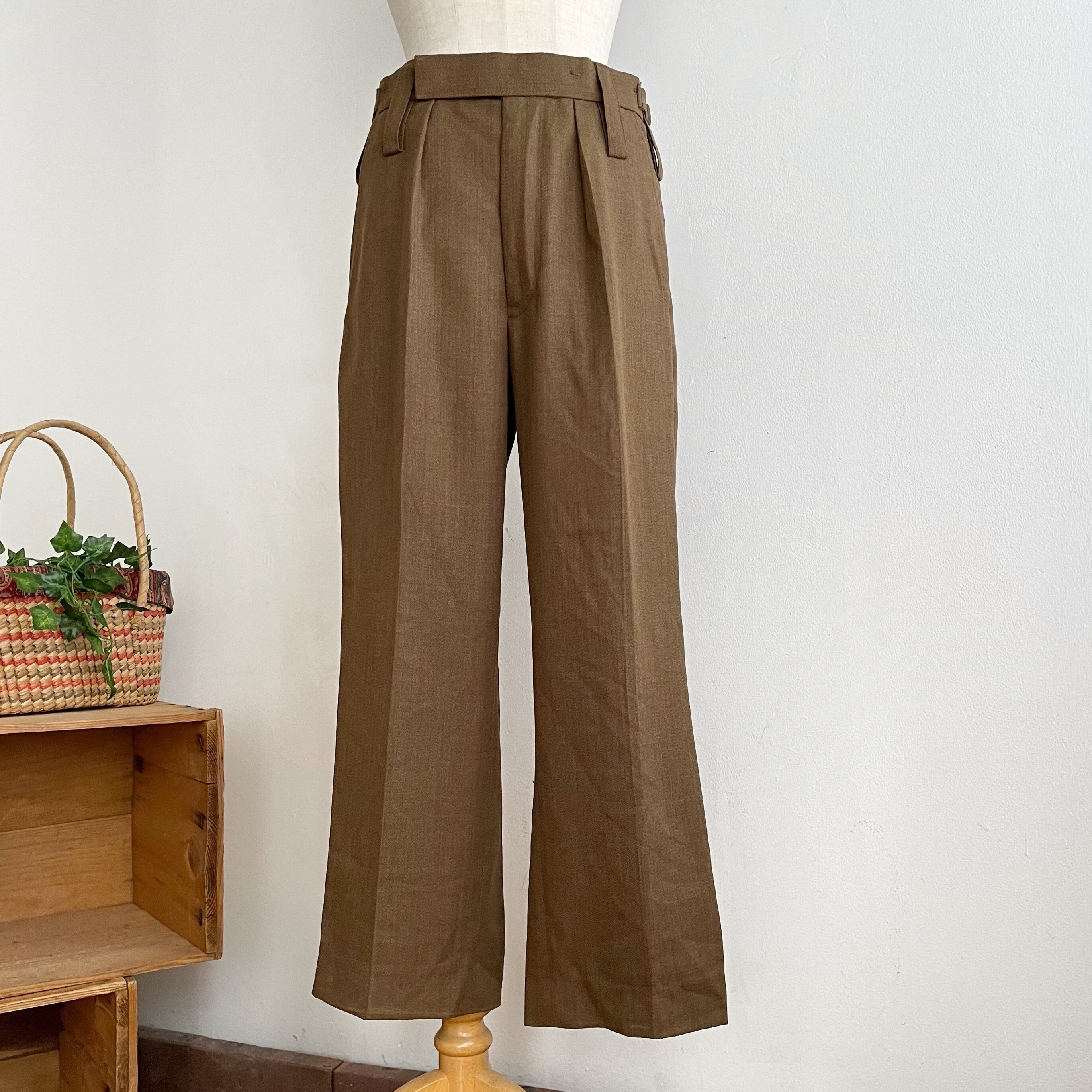こちらはDEADSTOCKのお品ですが、丈直しされており155㎝のスタッフが着用して裾が擦らない程度の長さになっております。