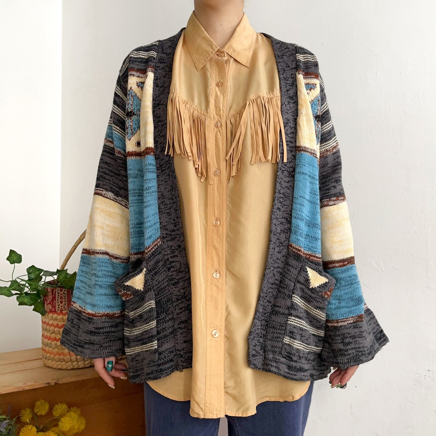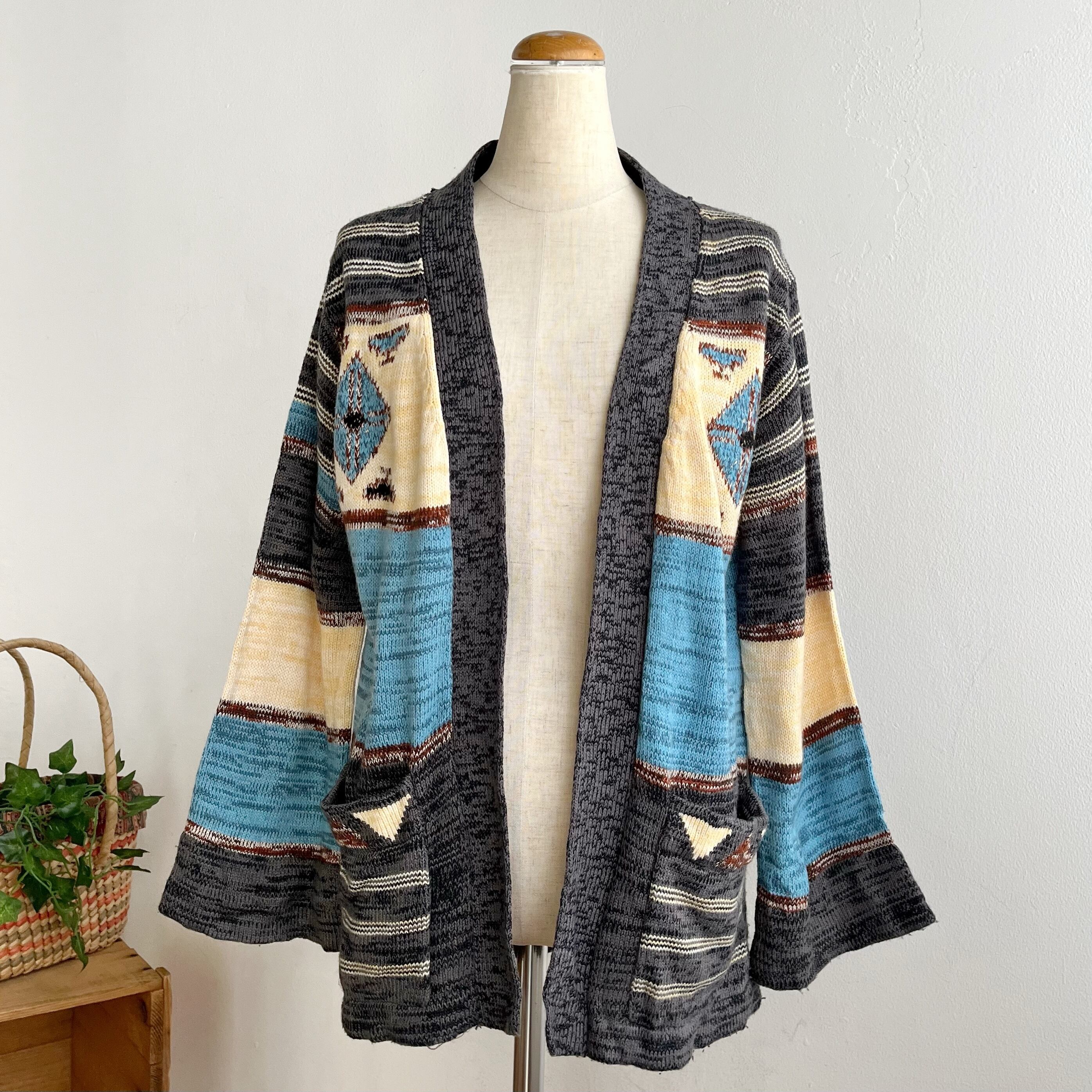 ネイティブなデザインが可愛いニットカーディガンです。