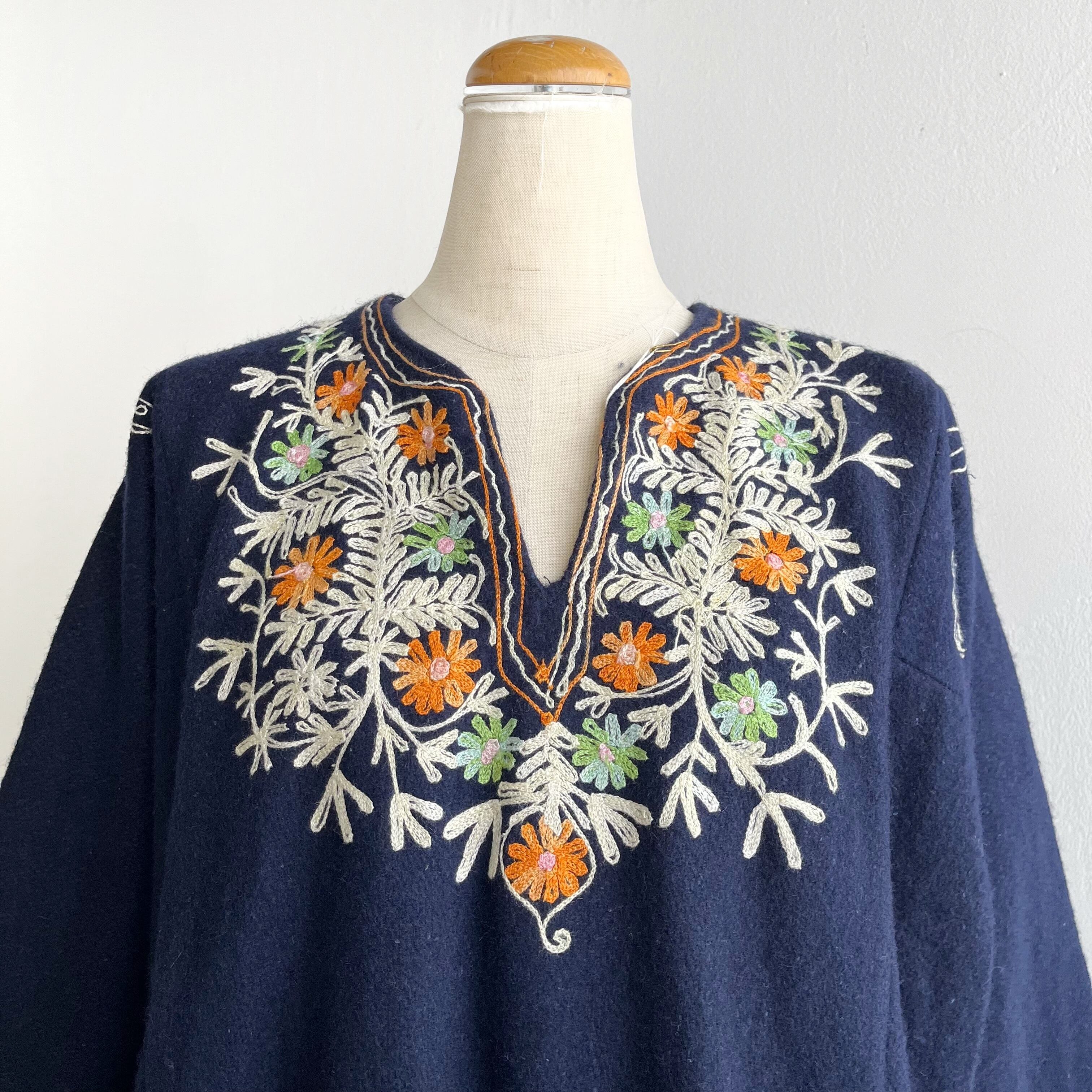 ほんのりフレアな袖に、カラフルなみっちりお花の刺繍が可愛い一着。