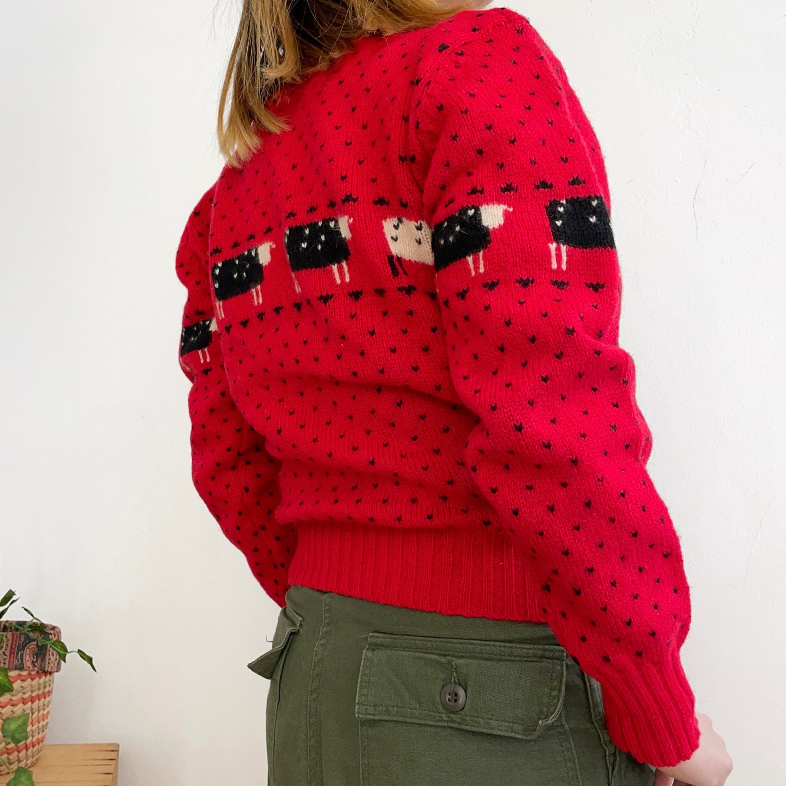 羊がぐるりと胸元にデザインされたvintageセーターです。