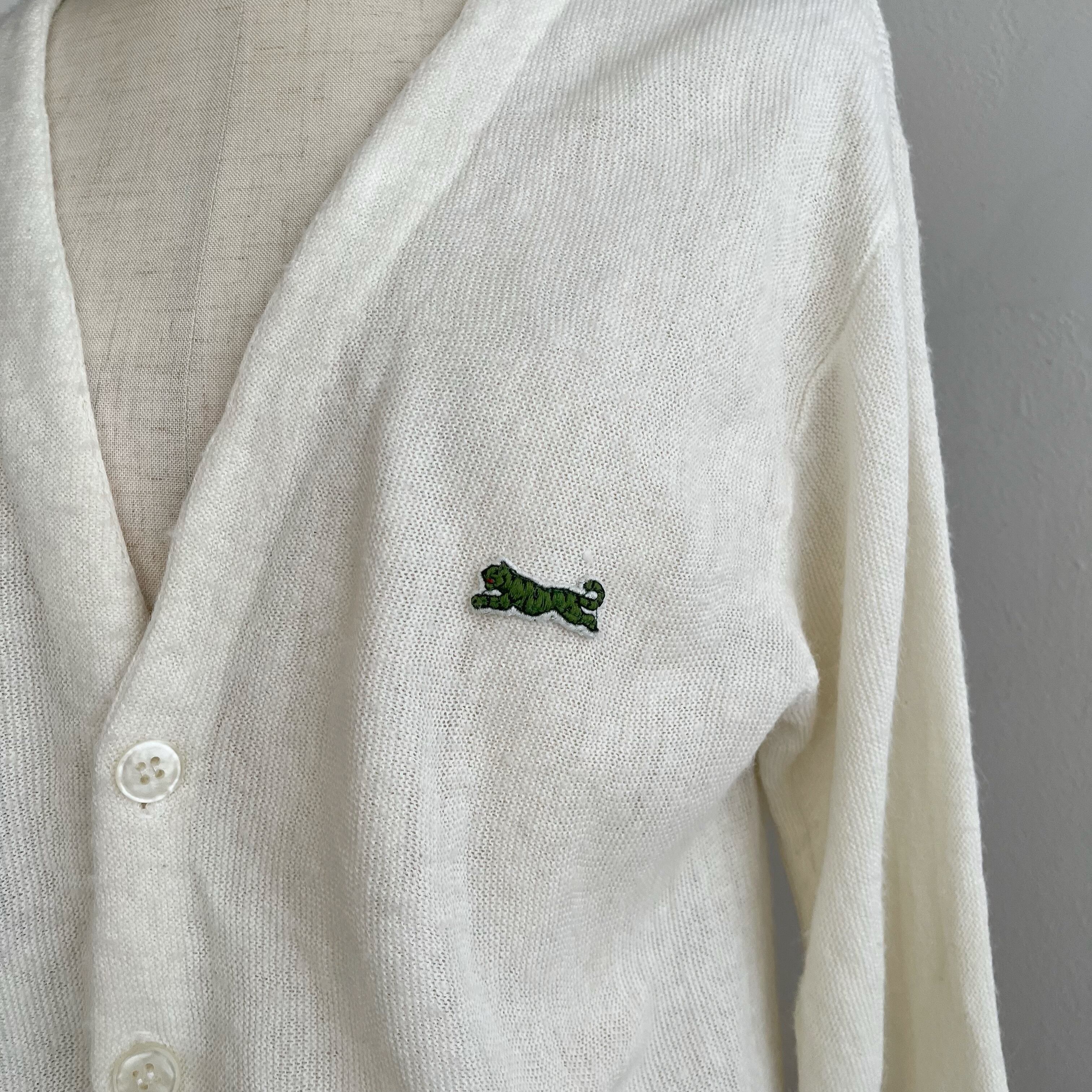 胸元に虎のパッチが付いた可愛いデザインのアクリルカーディガンです。