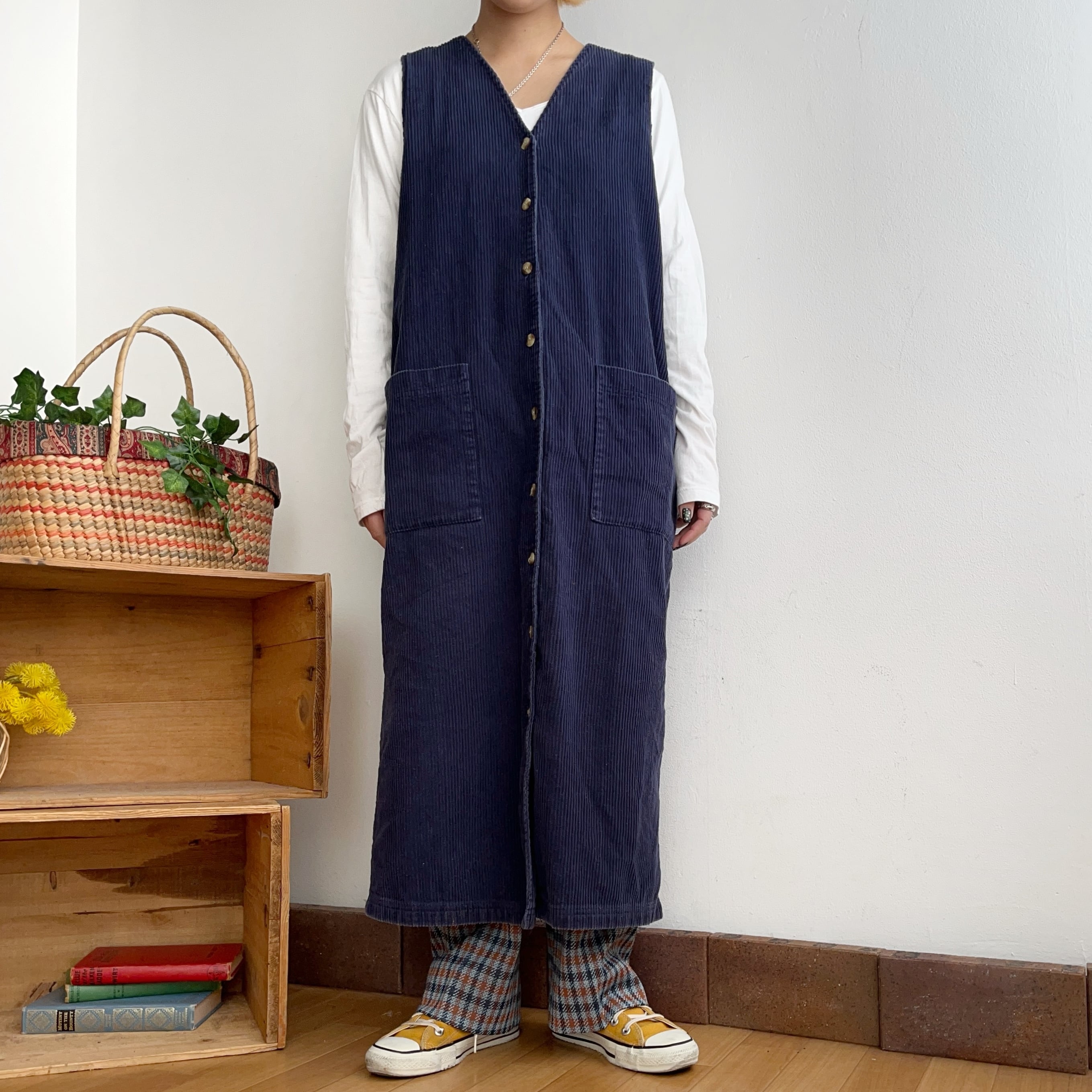 ボックスシルエットが可愛い、ネイビーのノースリーブワンピースです。